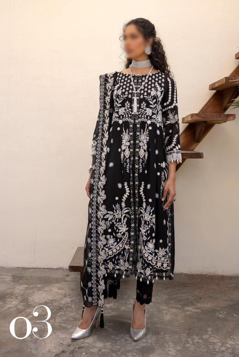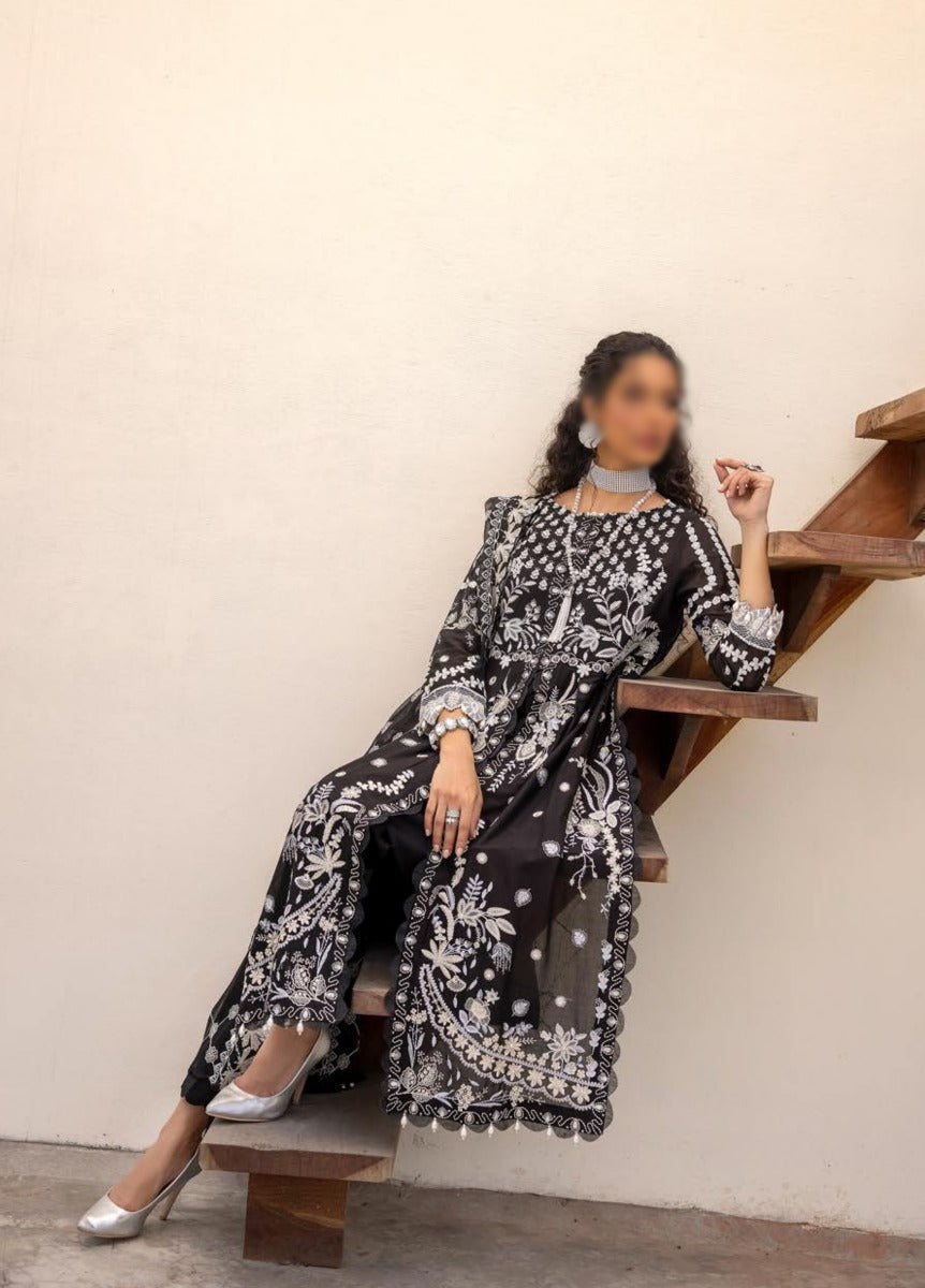 3 Piece Embroidered Swiss Suit with Exclusive Embroidery Dupatta.