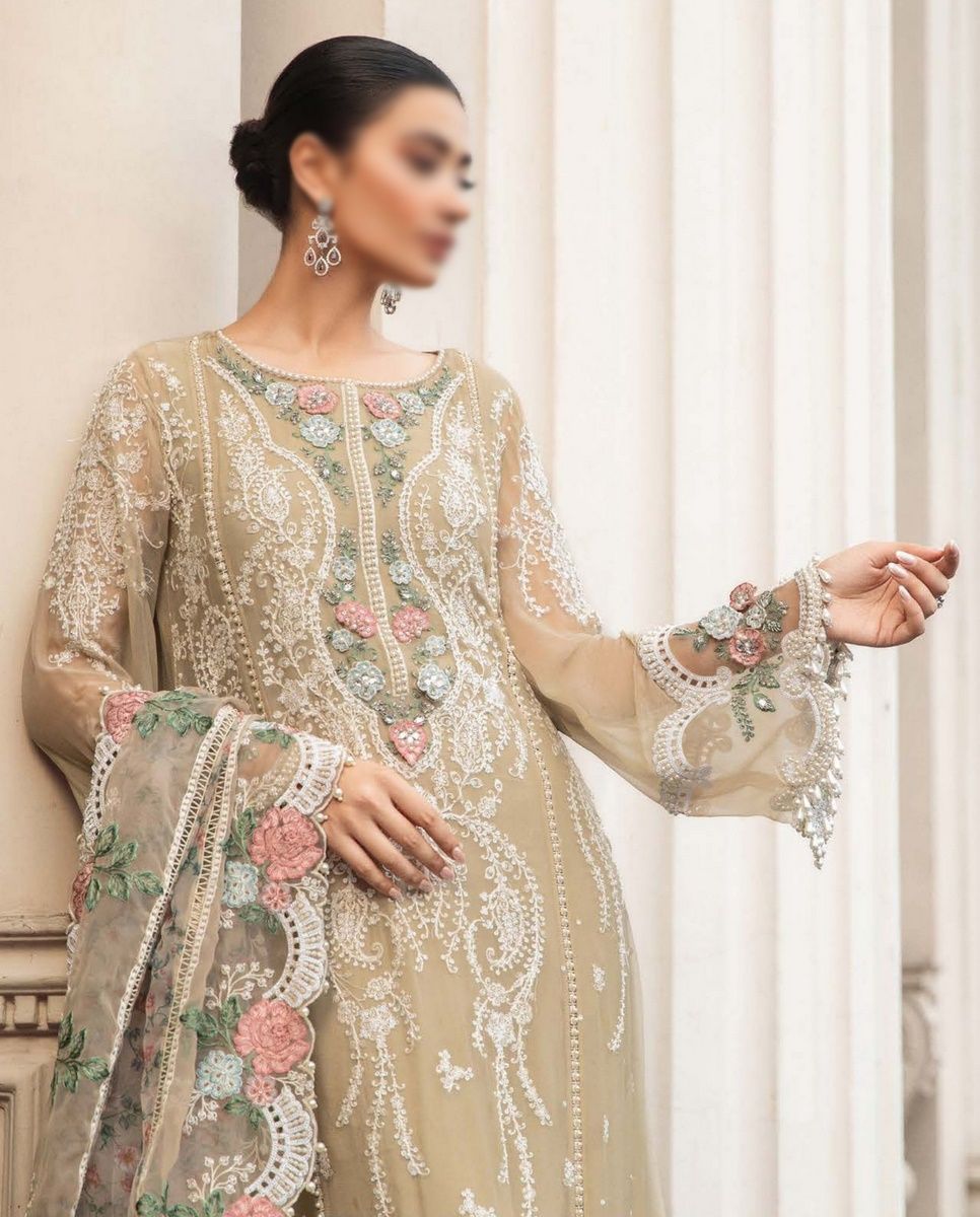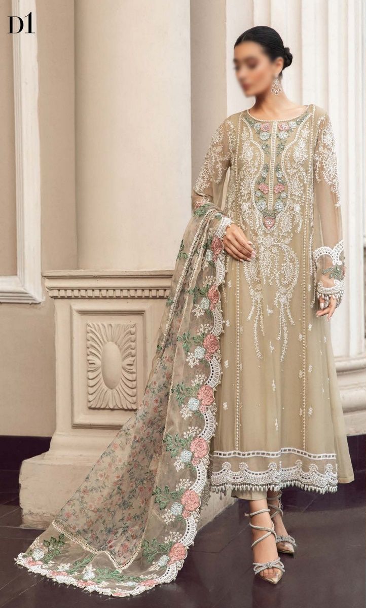 Maria B Unstitched Chiffon Collection 2023 has been styled in the image for photography and illustrative purposes.