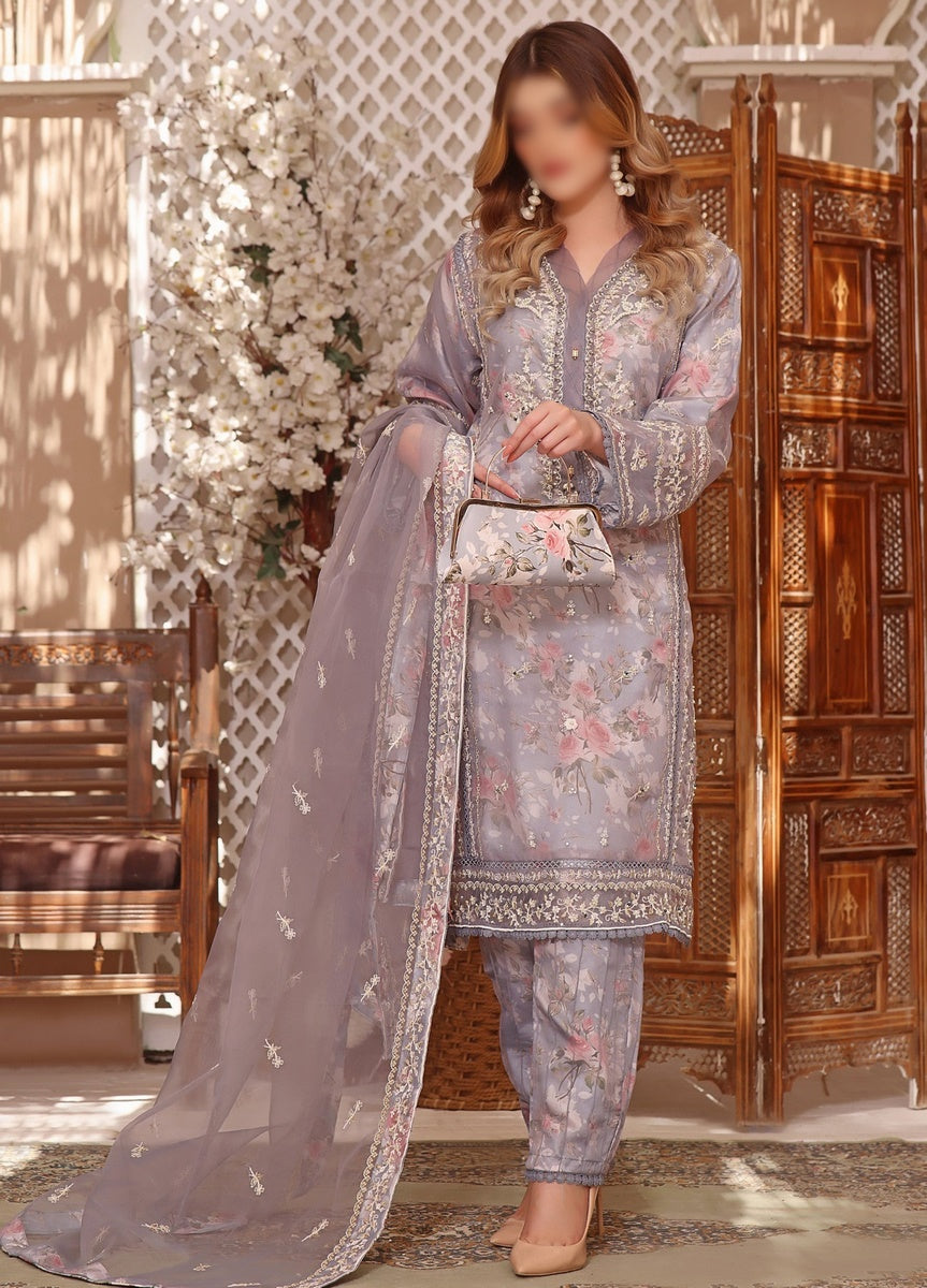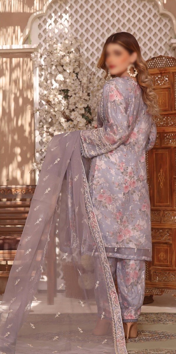 Embroidered Organza stitched Shirt with Handwork and Work along with Print Silk Inner