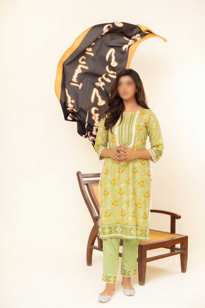 Amna Khadija Embroidered Crinkle Chiffon Unstitched 3 Piece Suit - D-02 - AM25LXC - Green - Formals Collection