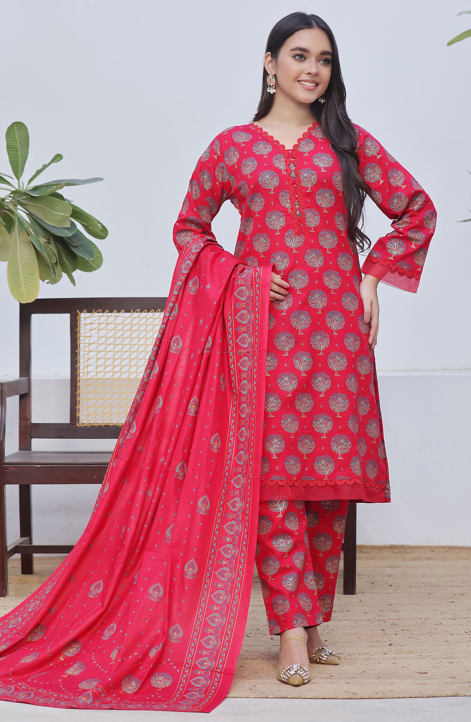 Limra by Johra Printed Lawn Unstitched 3 Piece Suit - JW-1422 - JH25LIMR - Maroon - Casual Collection
