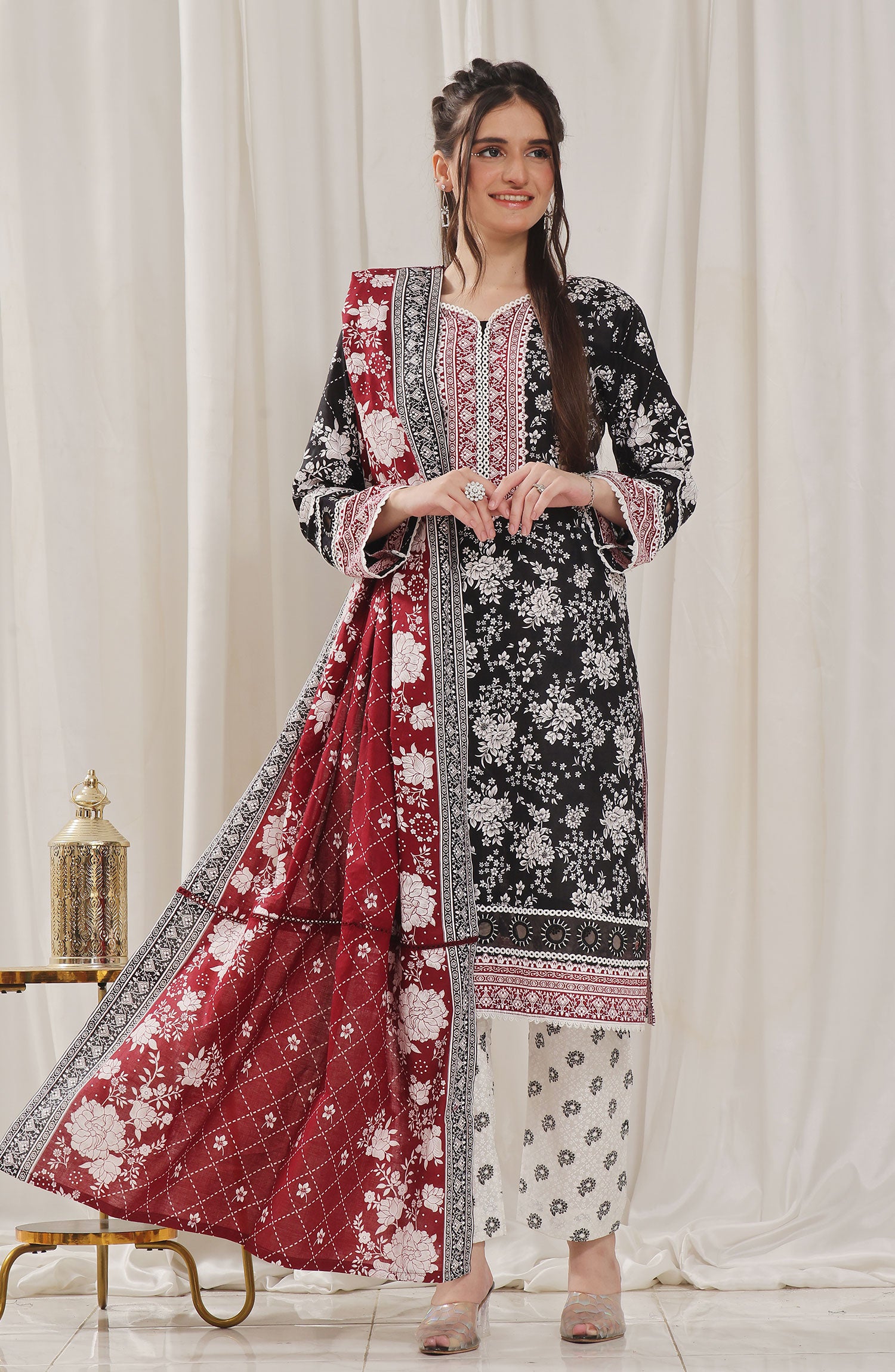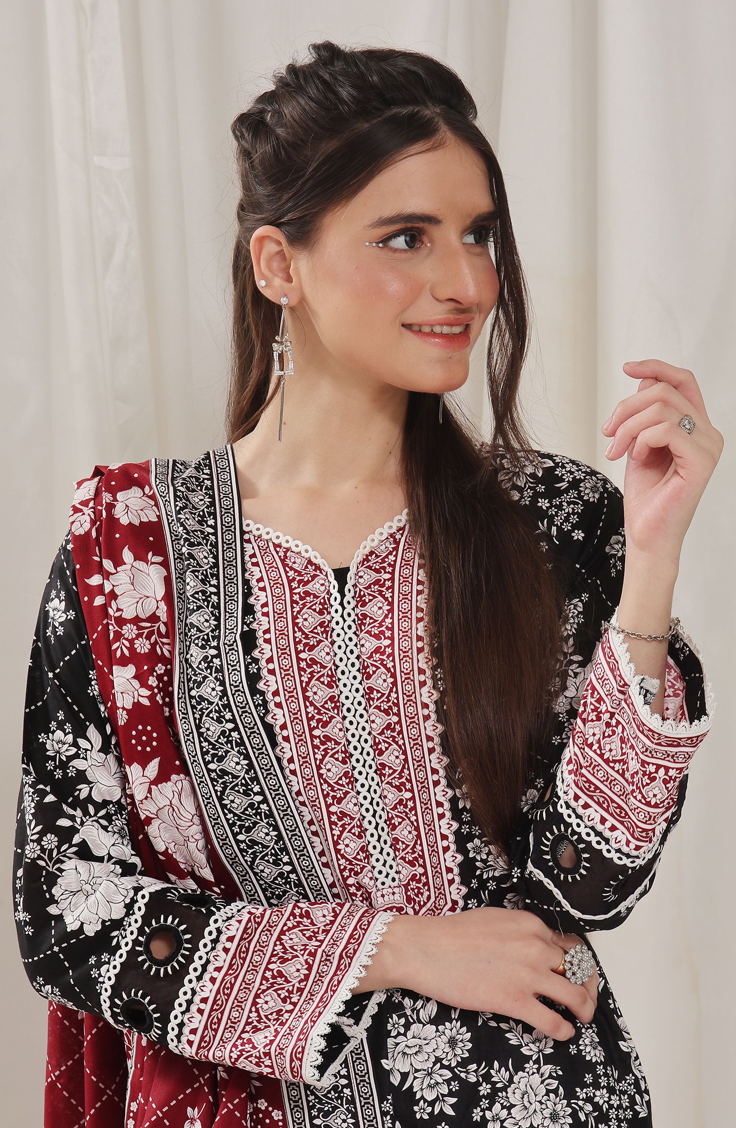 Limra by Johra Printed Lawn Unstitched 3 Piece Suit - JW-1422 - JH25LIMR - Maroon - Casual Collection