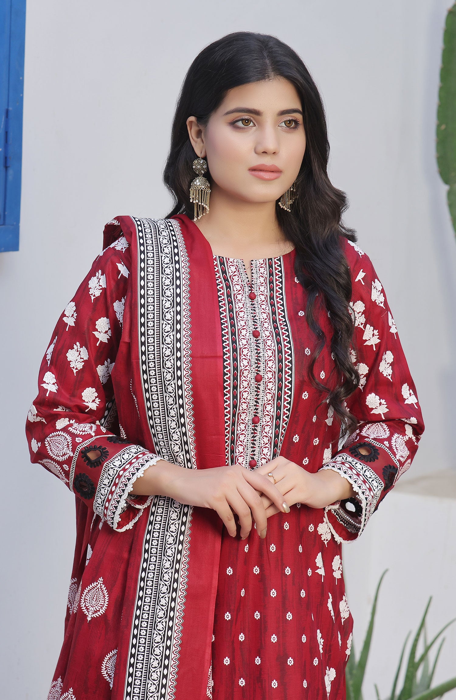 Amna Khadija Embroidered Crinkle Chiffon Unstitched 3 Piece Suit - D-01 - AM25LXC - Red - Formals Collection