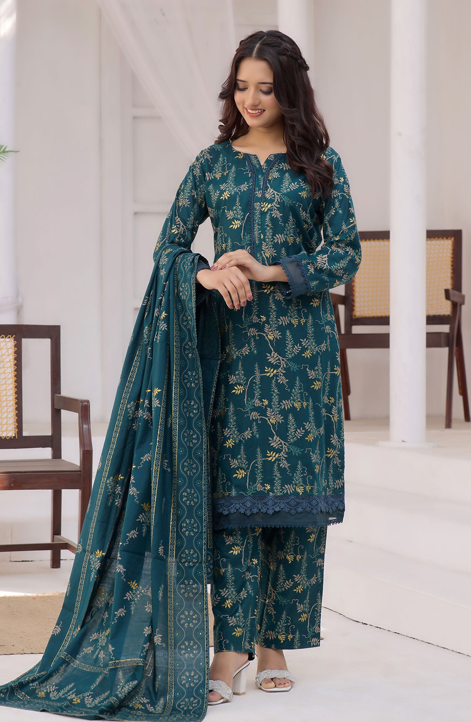 3 piece printed Cotton lawn suit .