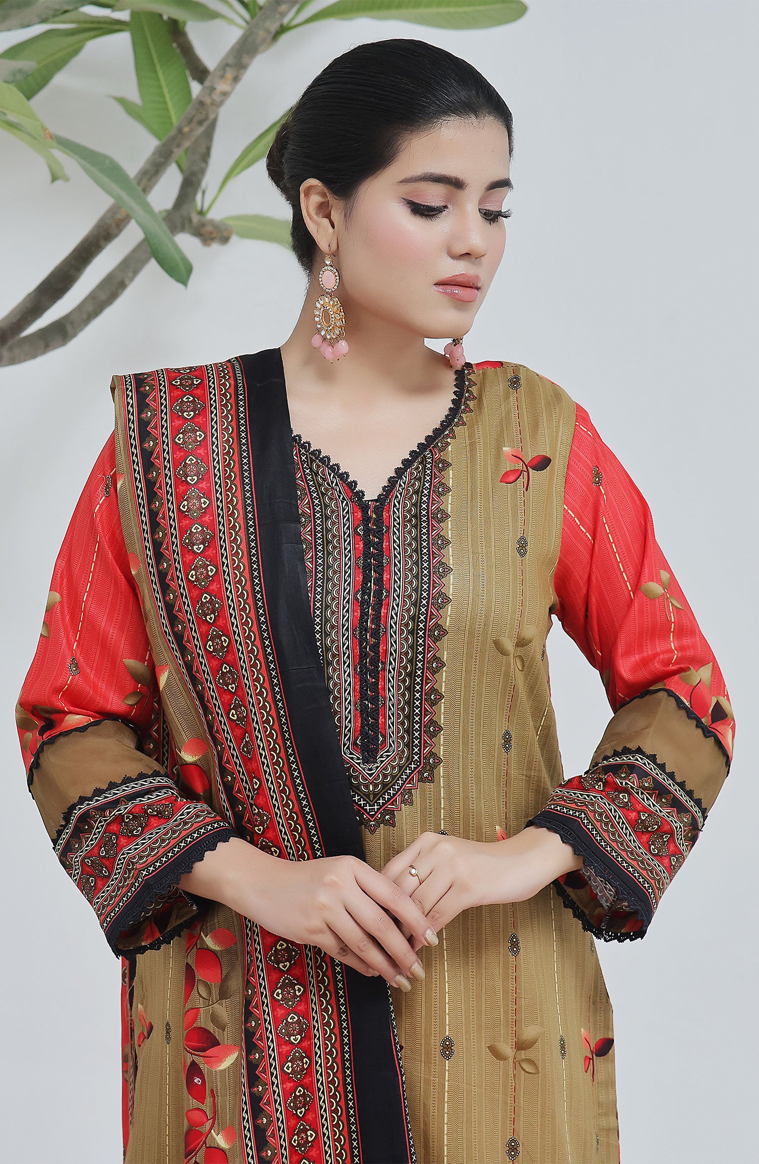 Designer Cotton Lawn 3 Pcs Unstitched Printed Collection 2024 has been styled in the image for photography and illustrative purposes.