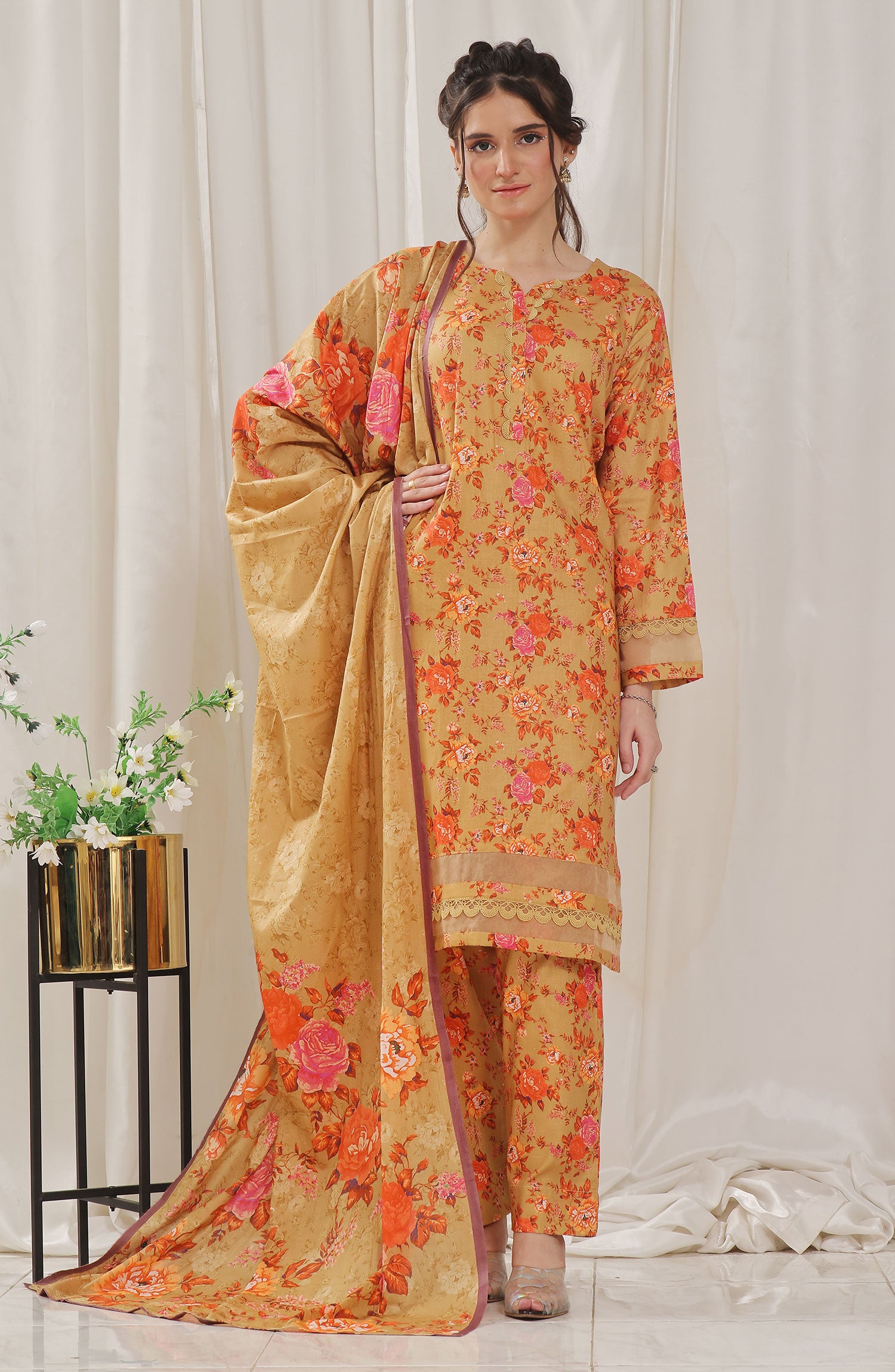 Designer Cotton Lawn 3 Pcs  Unstitched Printed Collection 2024 vol 04 - DL-129