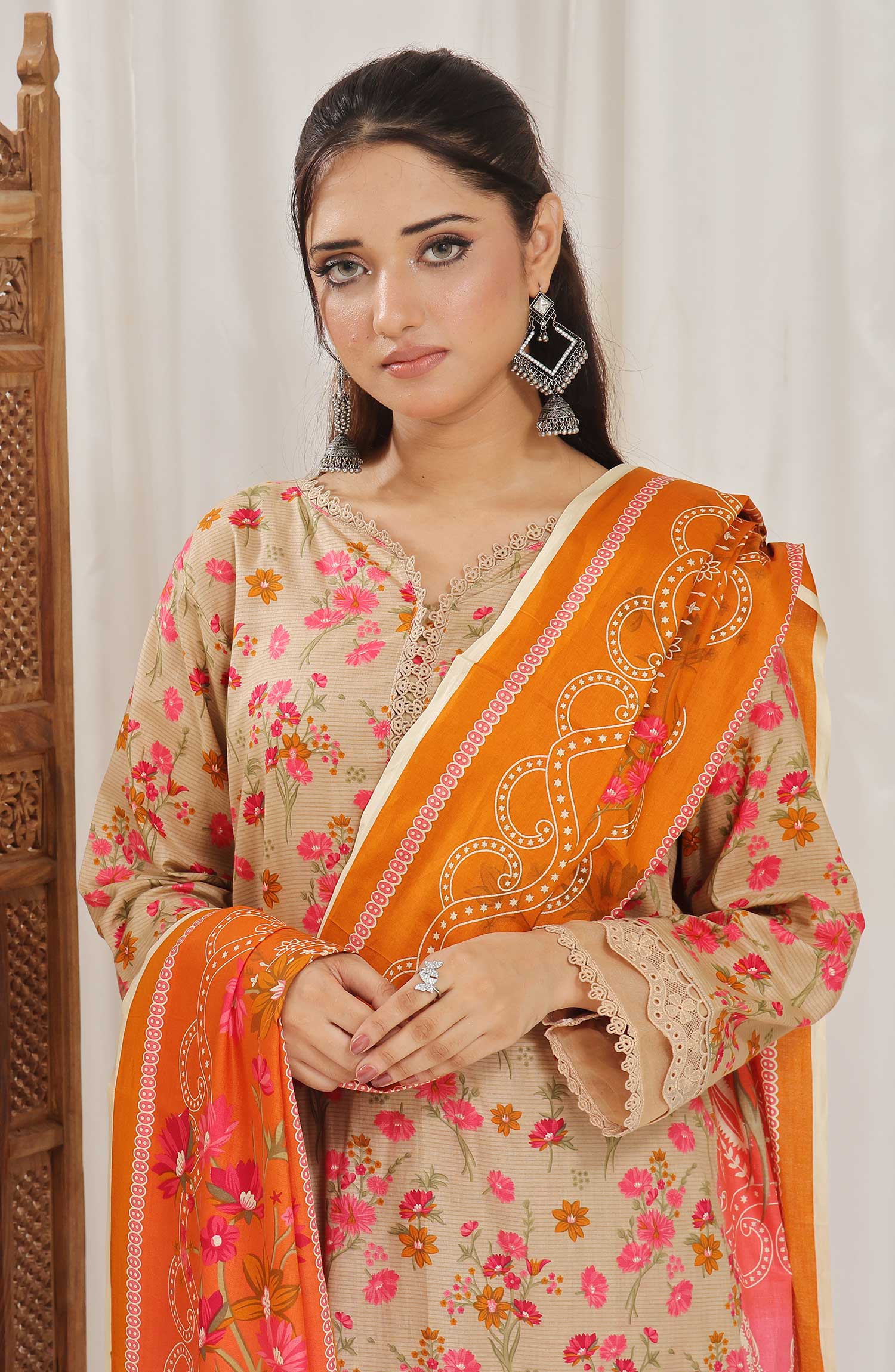 Designer Cotton Lawn 3 Pcs Unstitched Printed Collection 2024 has been styled in the image for photography and illustrative purposes.