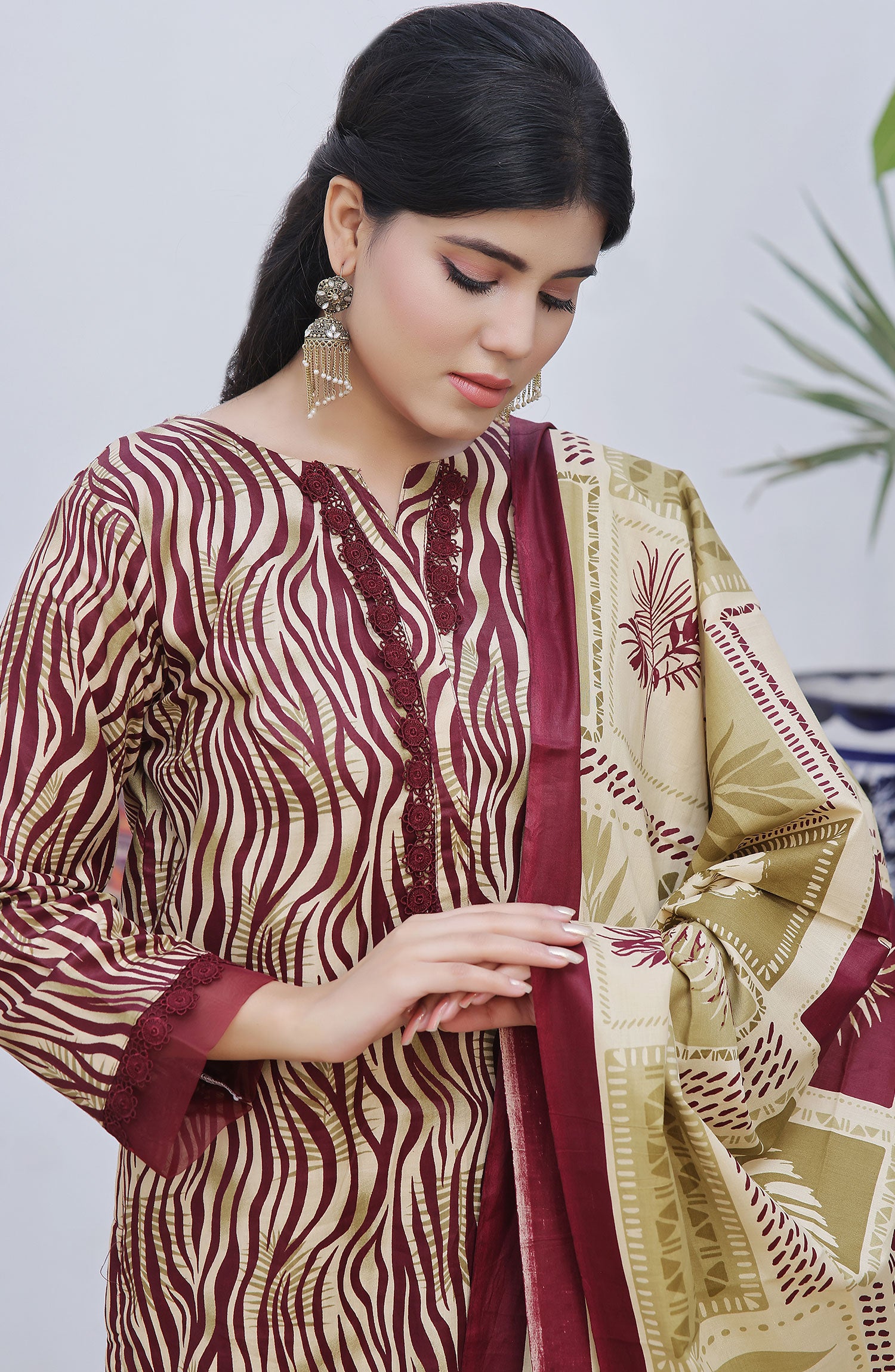 Designer Cotton Lawn 3 Pcs Unstitched Printed Collection 2024 has been styled in the image for photography and illustrative purposes.