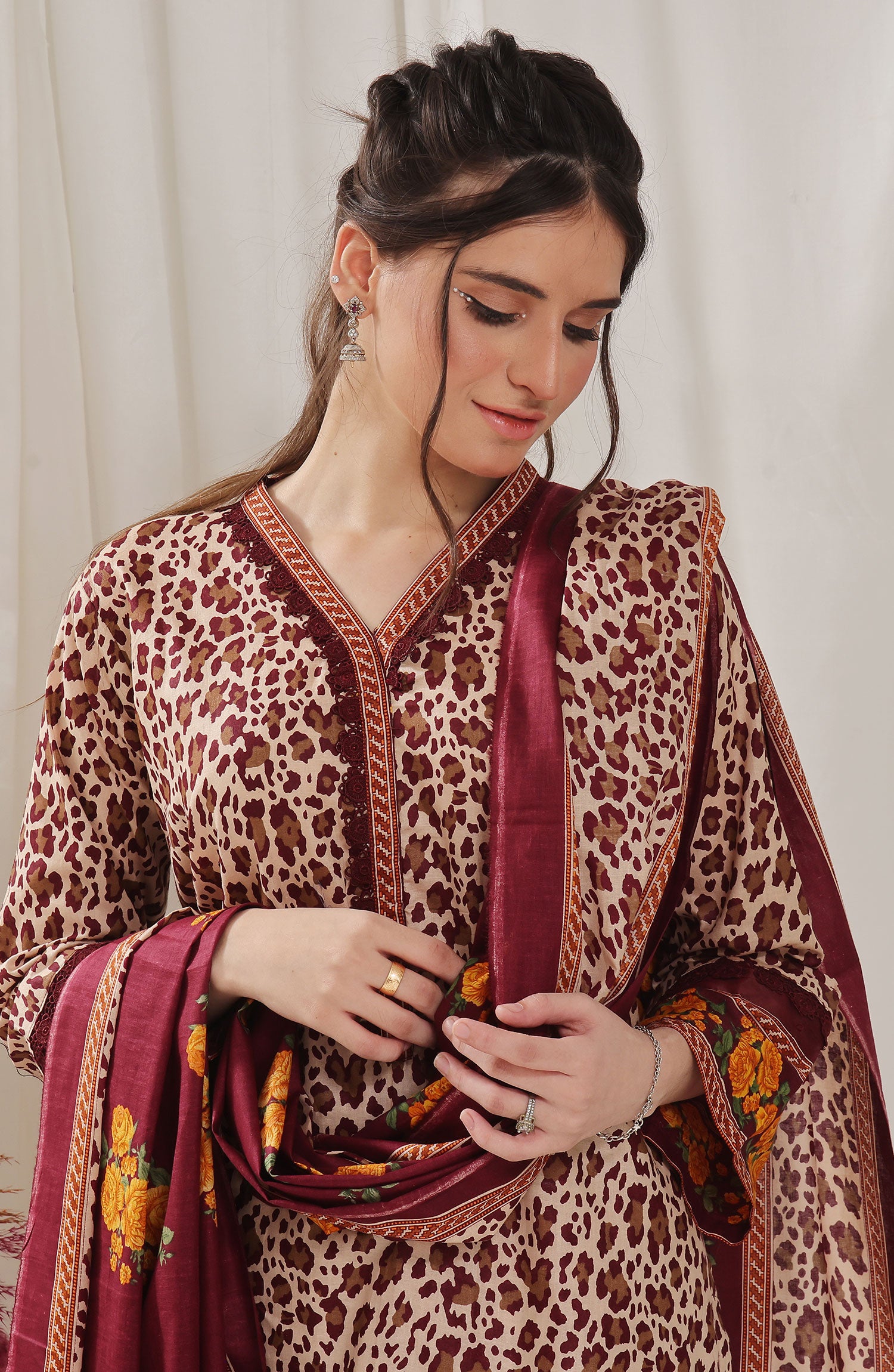 Amna Khadija Embroidered Crinkle Chiffon Unstitched 3 Piece Suit - D-01 - AM25LXC - Red - Formals Collection