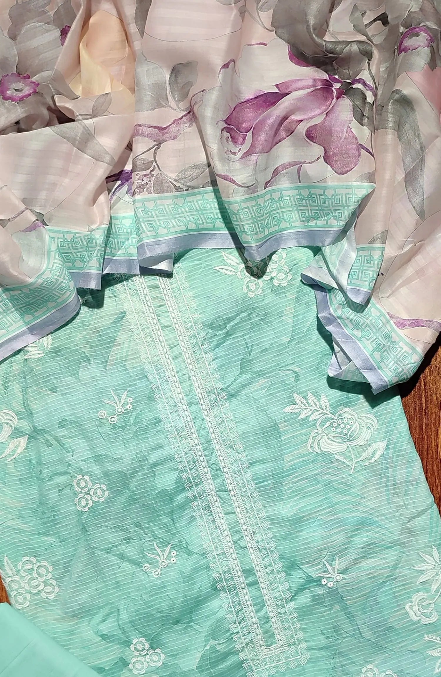 3 Piece Unstitched Embroidered Lawn Suit .