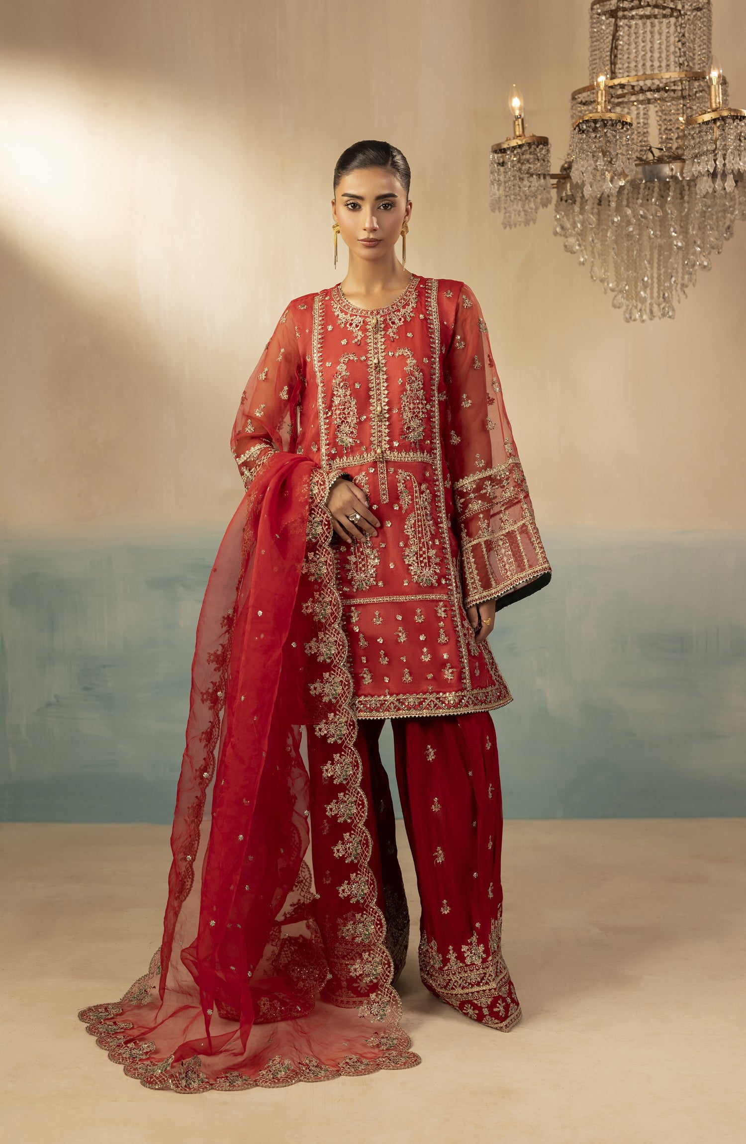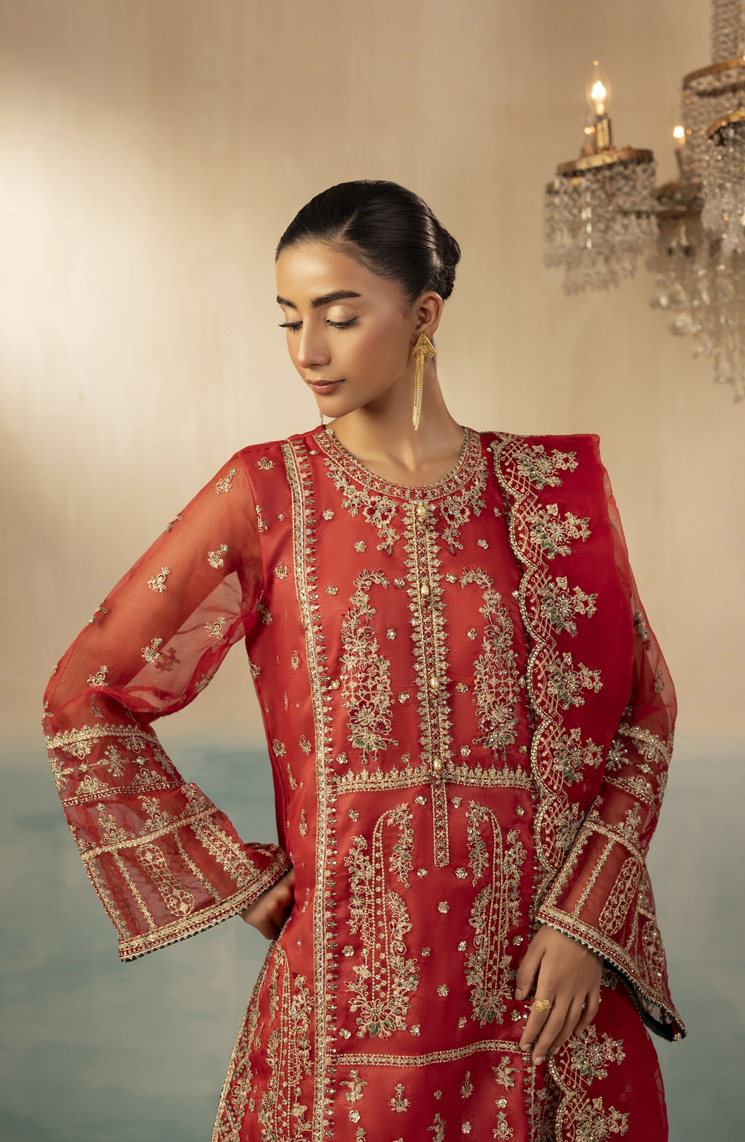 Diara Couture Signature Embroidered Organza Stitched 3 Piece Suit - INSHA - DC25SGN - Red - Luxury Collection