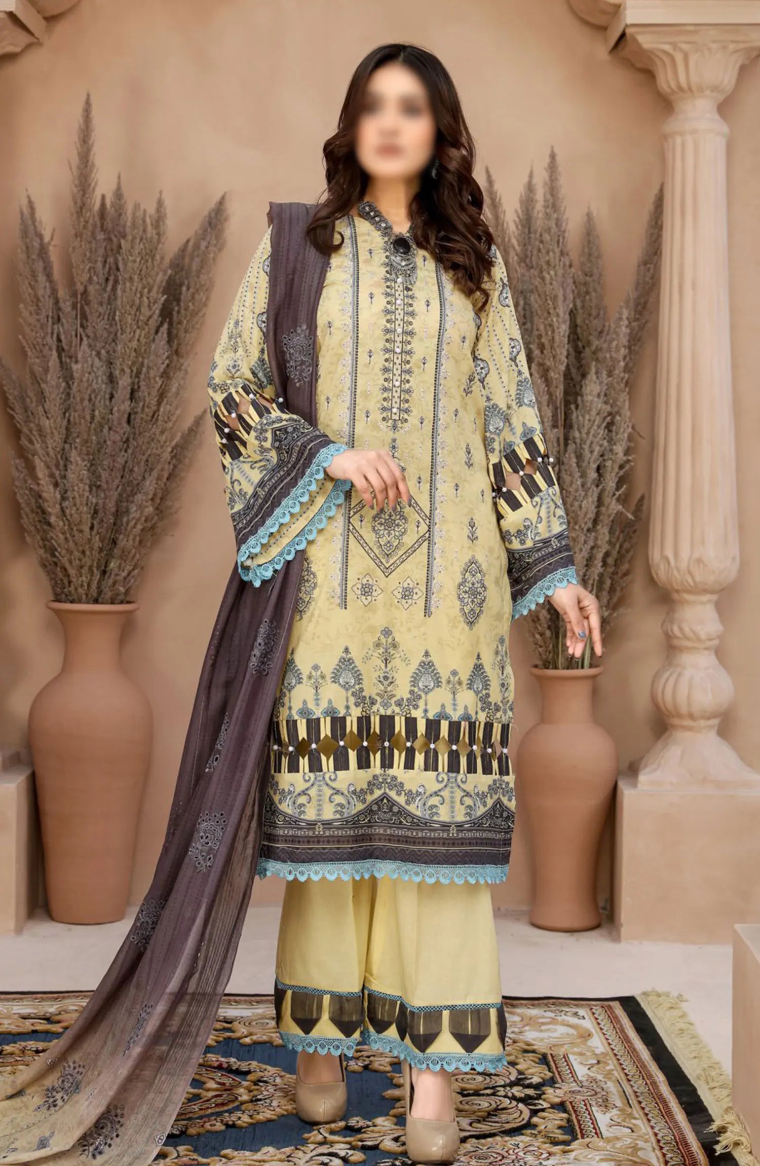 Digital Print and Embroidered Lawn Collection Vol 02 has been styled in the image for photography and illustrative purposes.