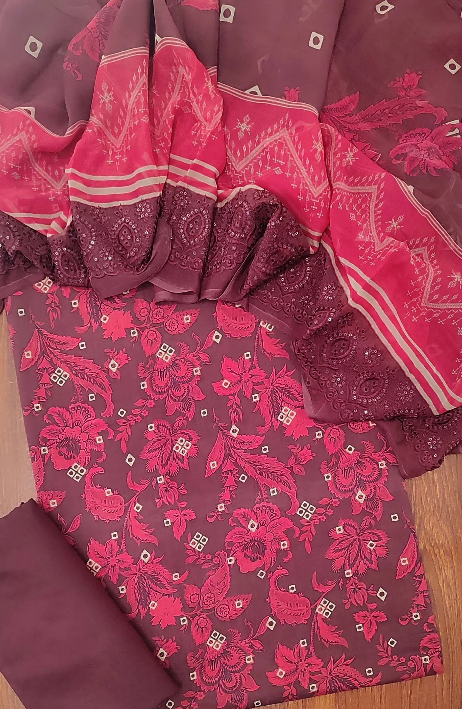 Digital Printed Lawn Collection with Chiffon Dupatta has been styled in the image for photography and illustrative purposes.