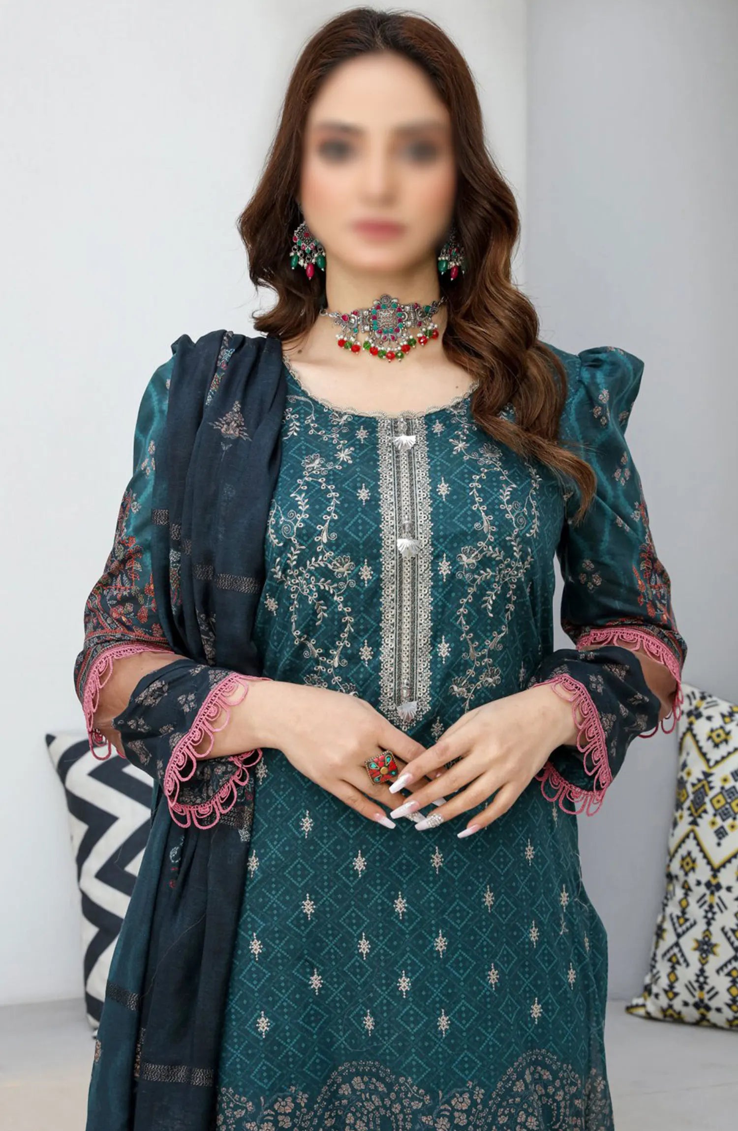 Dil E Momin Digital Print and Emb Lawn Collection Vol 05 has been styled in the image for photography and illustrative purposes.