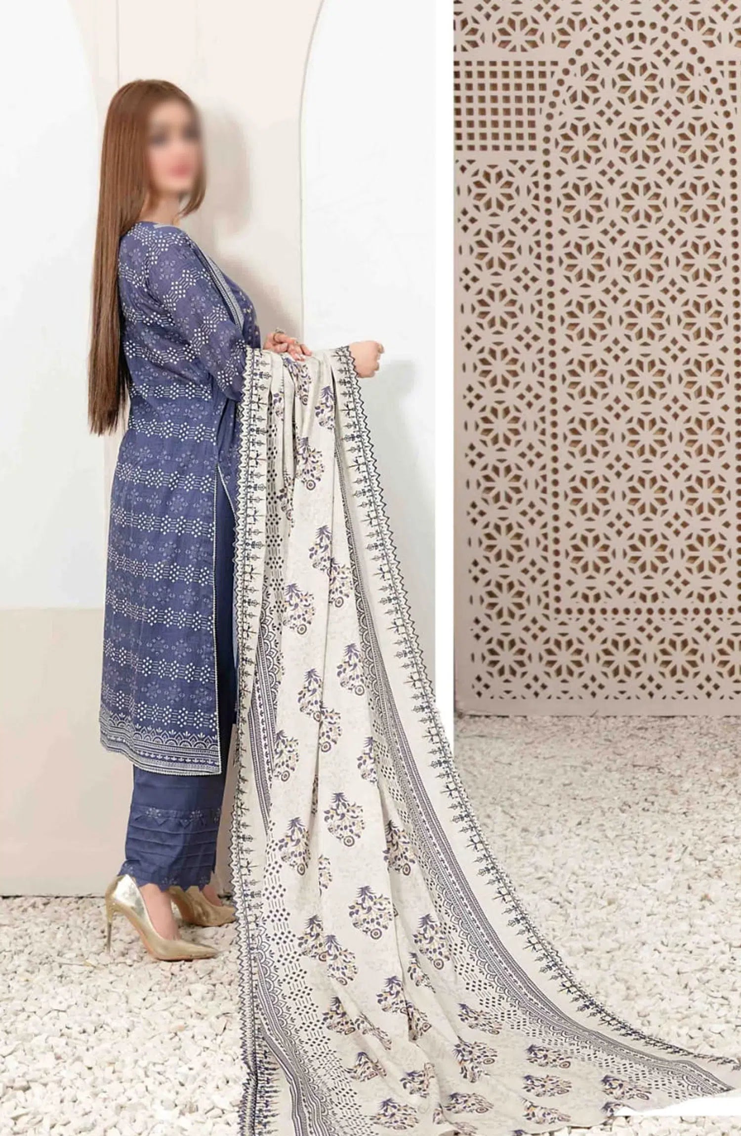 Rua by Casual Lite Embroidered Premium Linen Stitched 3 Piece Suit - D-06 Indigo Echo - CL25RU - Blue - Winter Collection