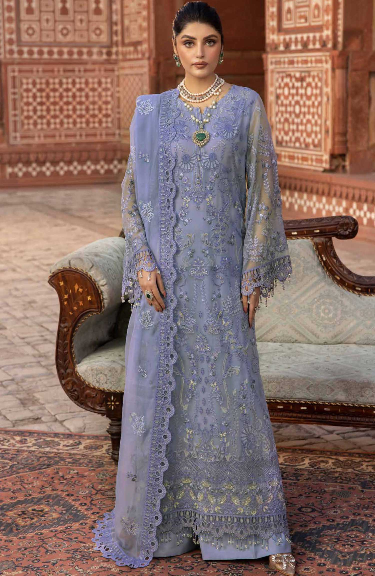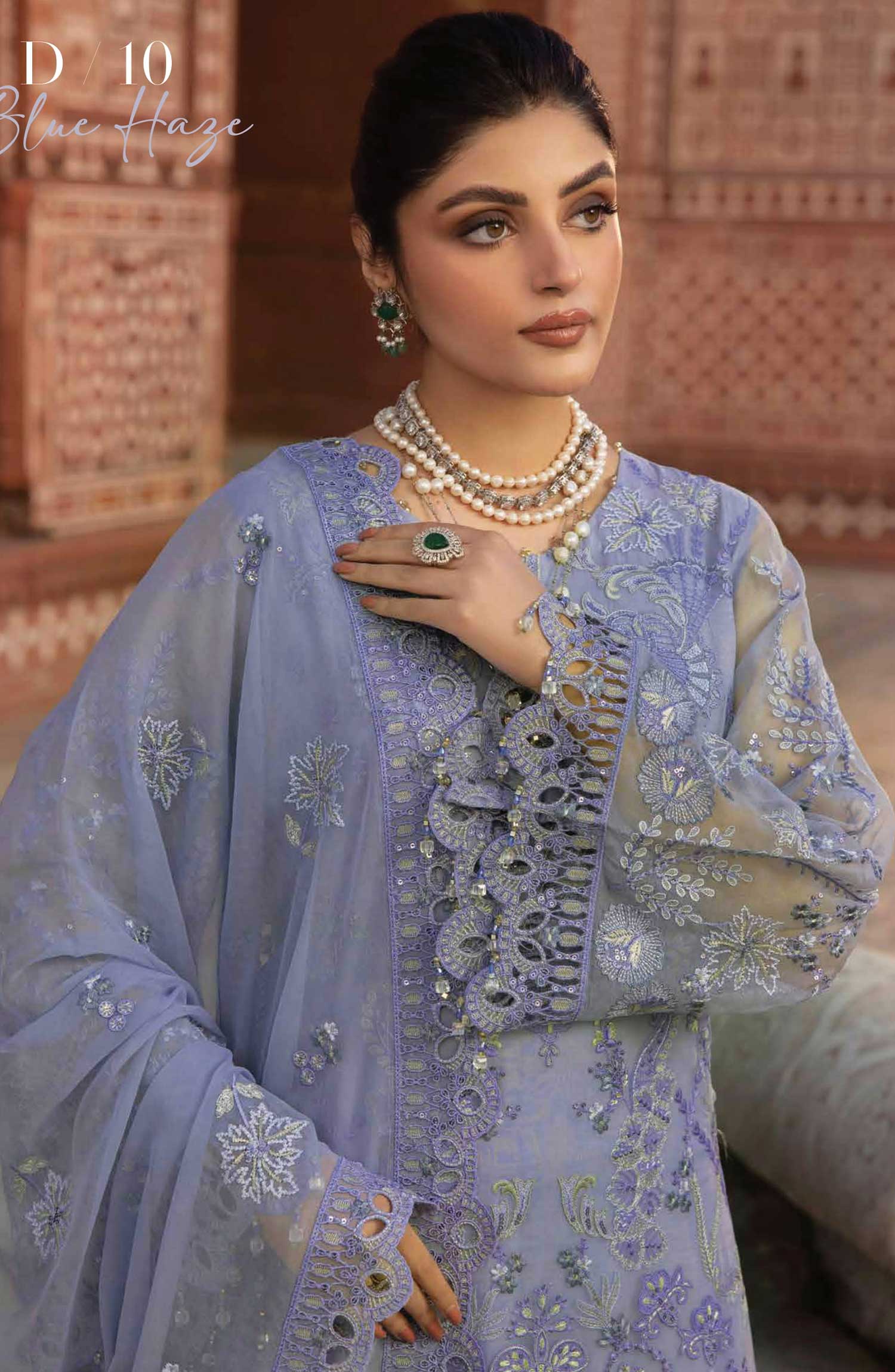 Lavish Premium Dilkash Luxury Chiffon Collection has been styled in the image for photography and illustrative purposes.