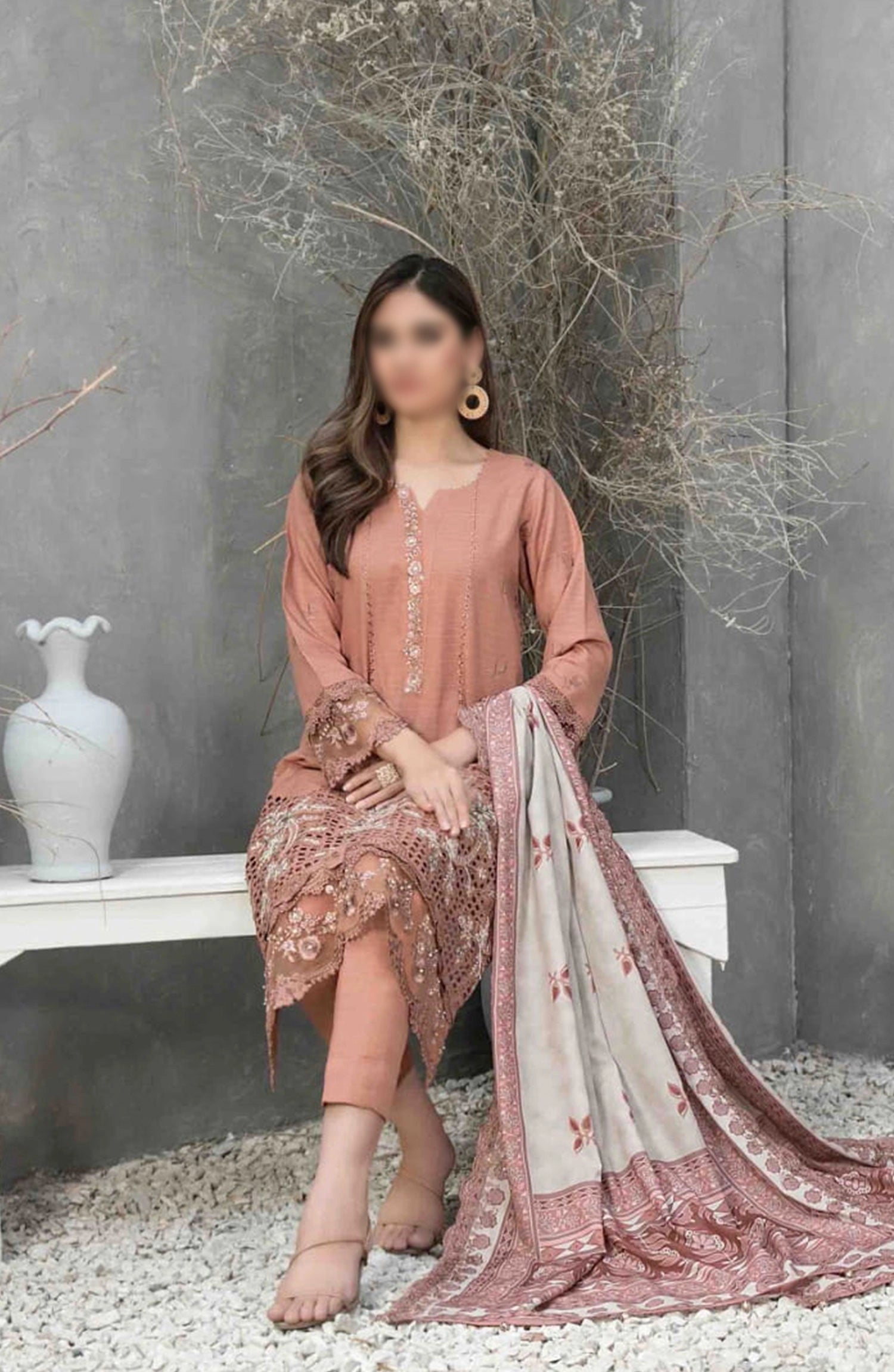 Dimah - Embroidered Schiffli Khaddar Collection has been styled in the image for photography and illustrative purposes.