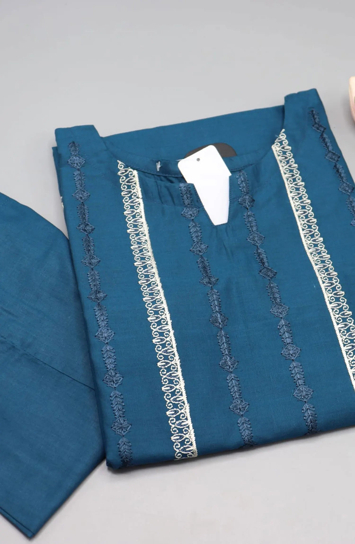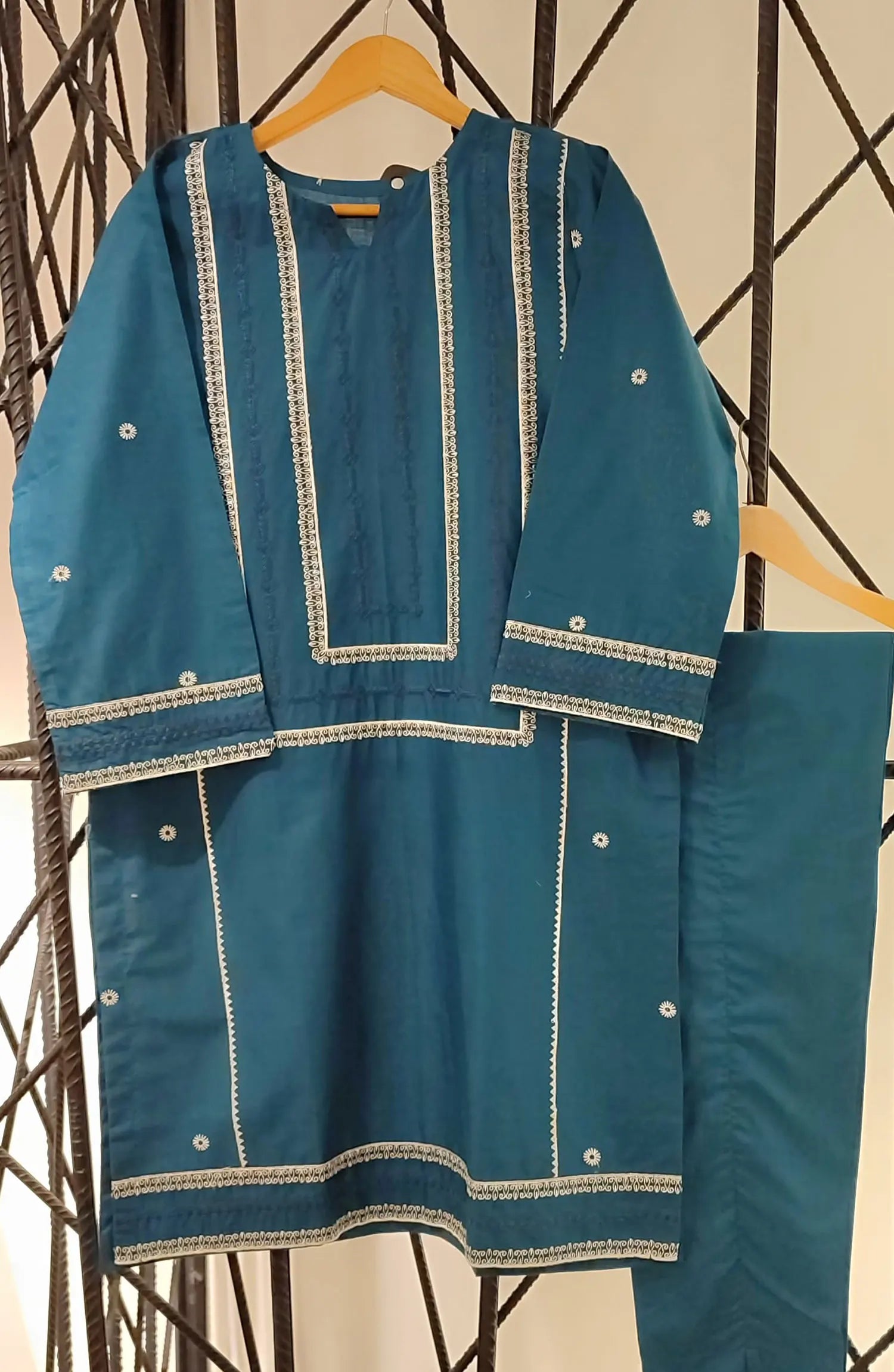 The standard style comes as a long-sleeved kameez and trouser/shalwar.