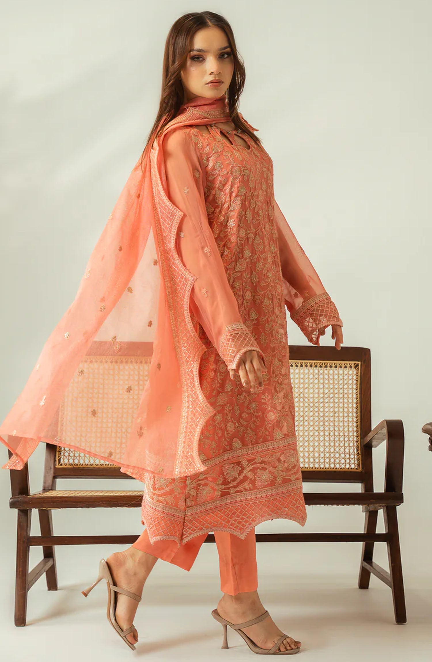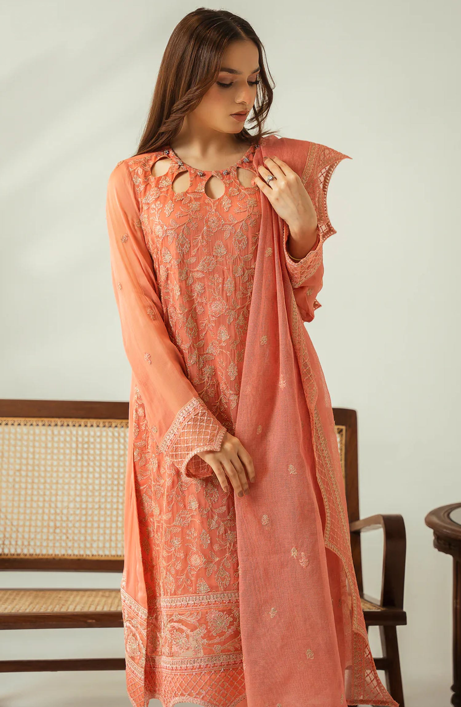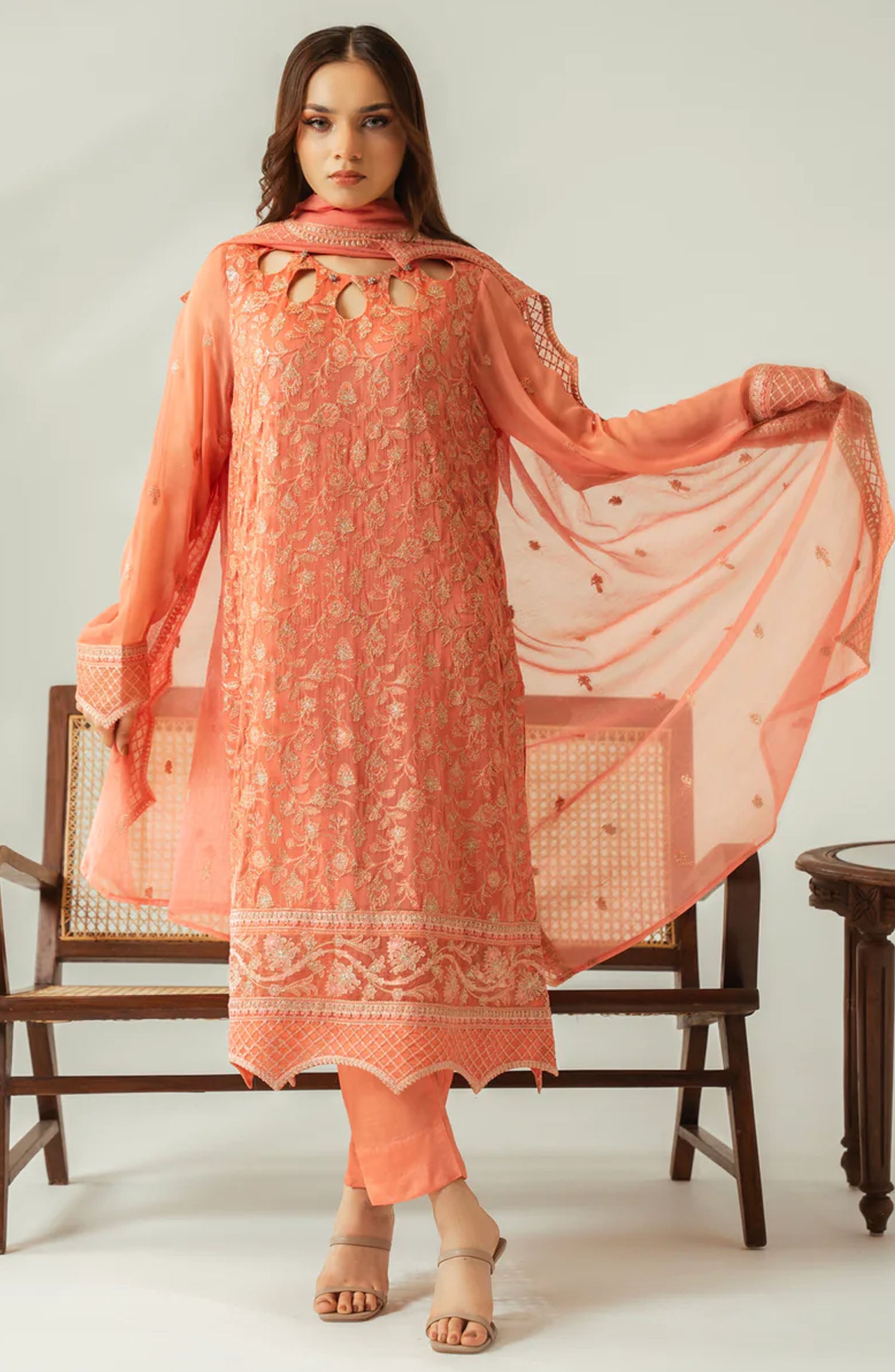 Diva by Zouj Embroidered Chiffon Unstitched 3 Piece Suit - Pale Rose - ZJ25DFL - Peach - Festive Collection