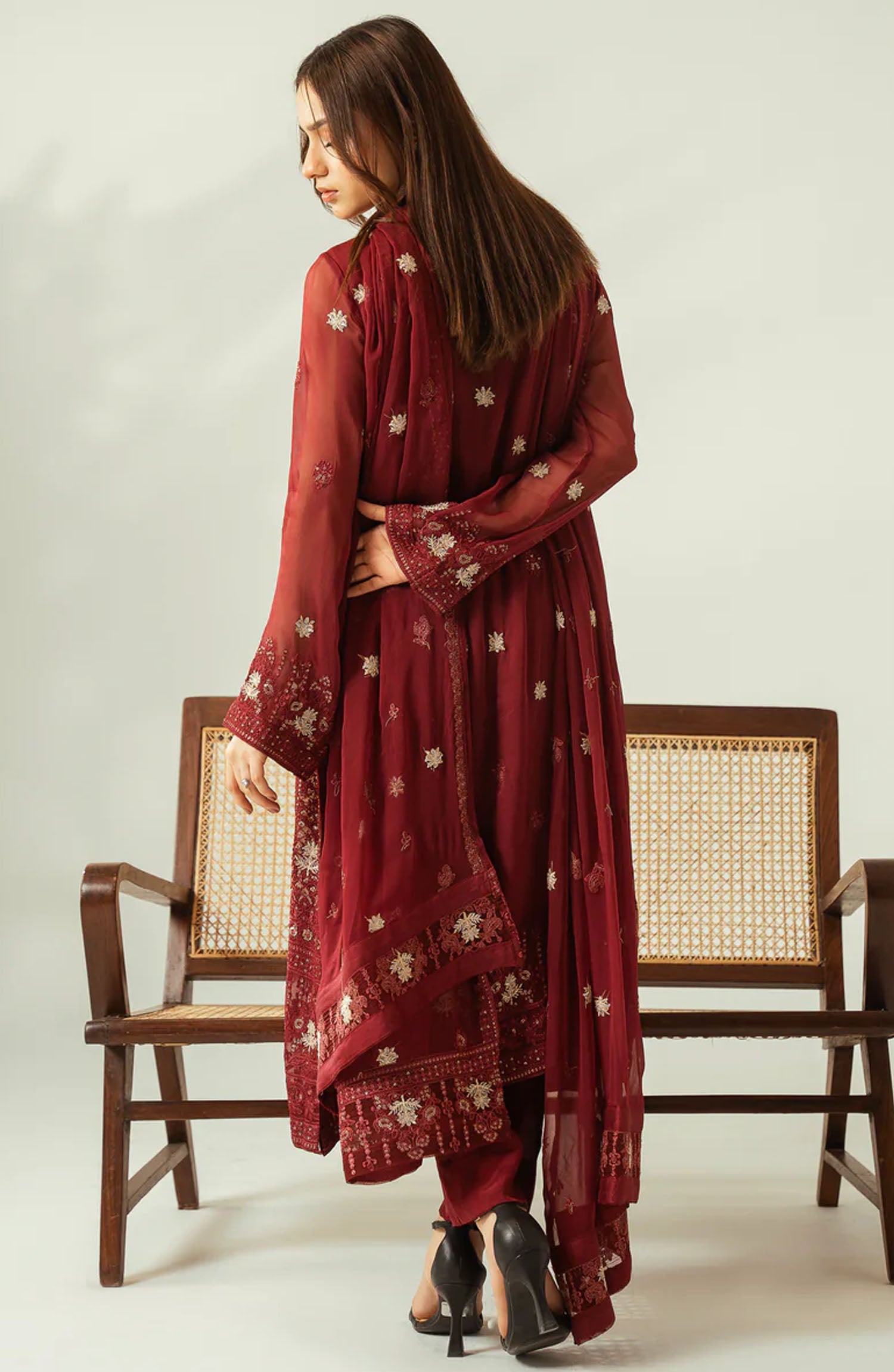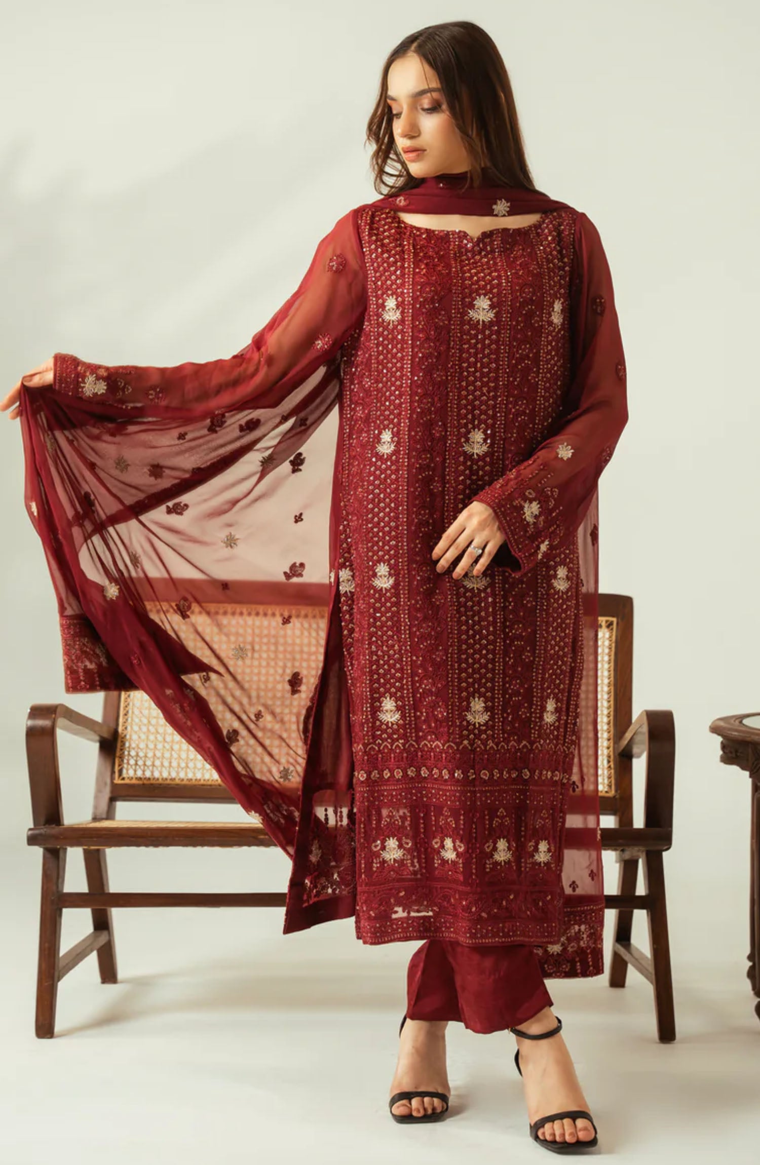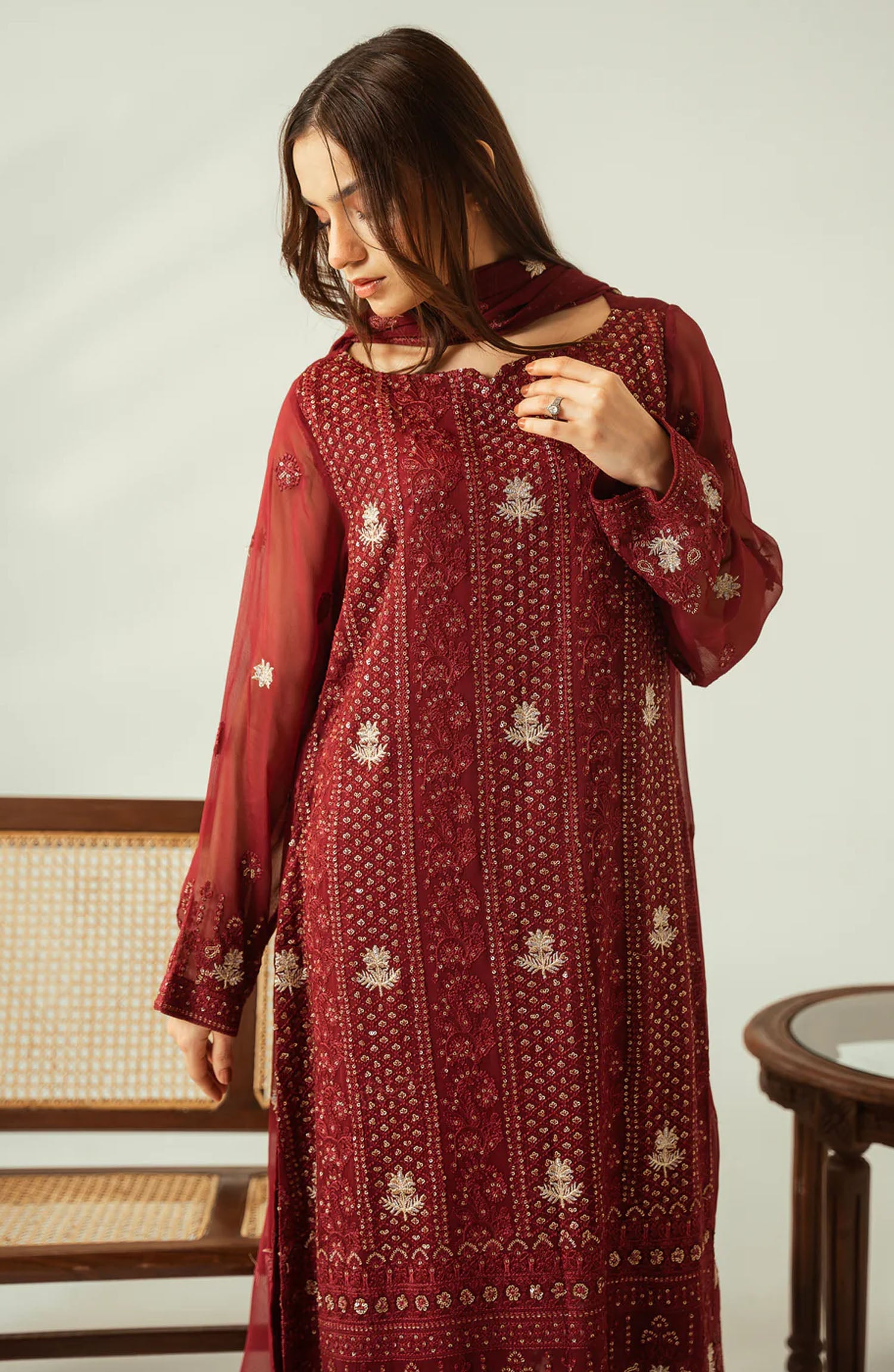Diva by Zouj Embroidered Chiffon Unstitched 3 Piece Suit - Ruby Bliss - ZJ25DFL - Red - Festive Collection