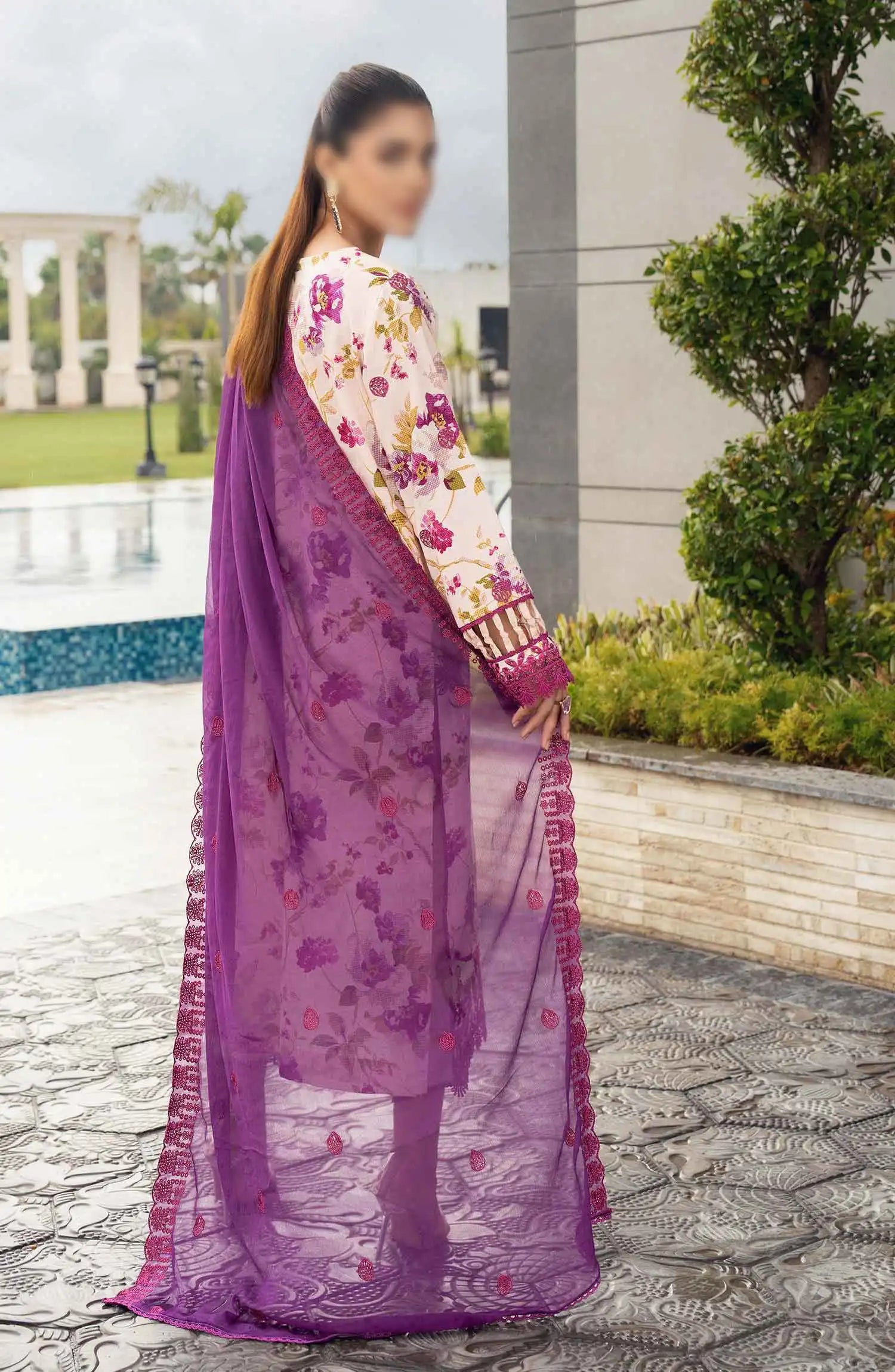 Maryams Luxury Embroidered Chiffon Unstitched 3 Piece Suit - ANUSHEH-ARZ-9007 - MAR25LF - White - Festive Collection