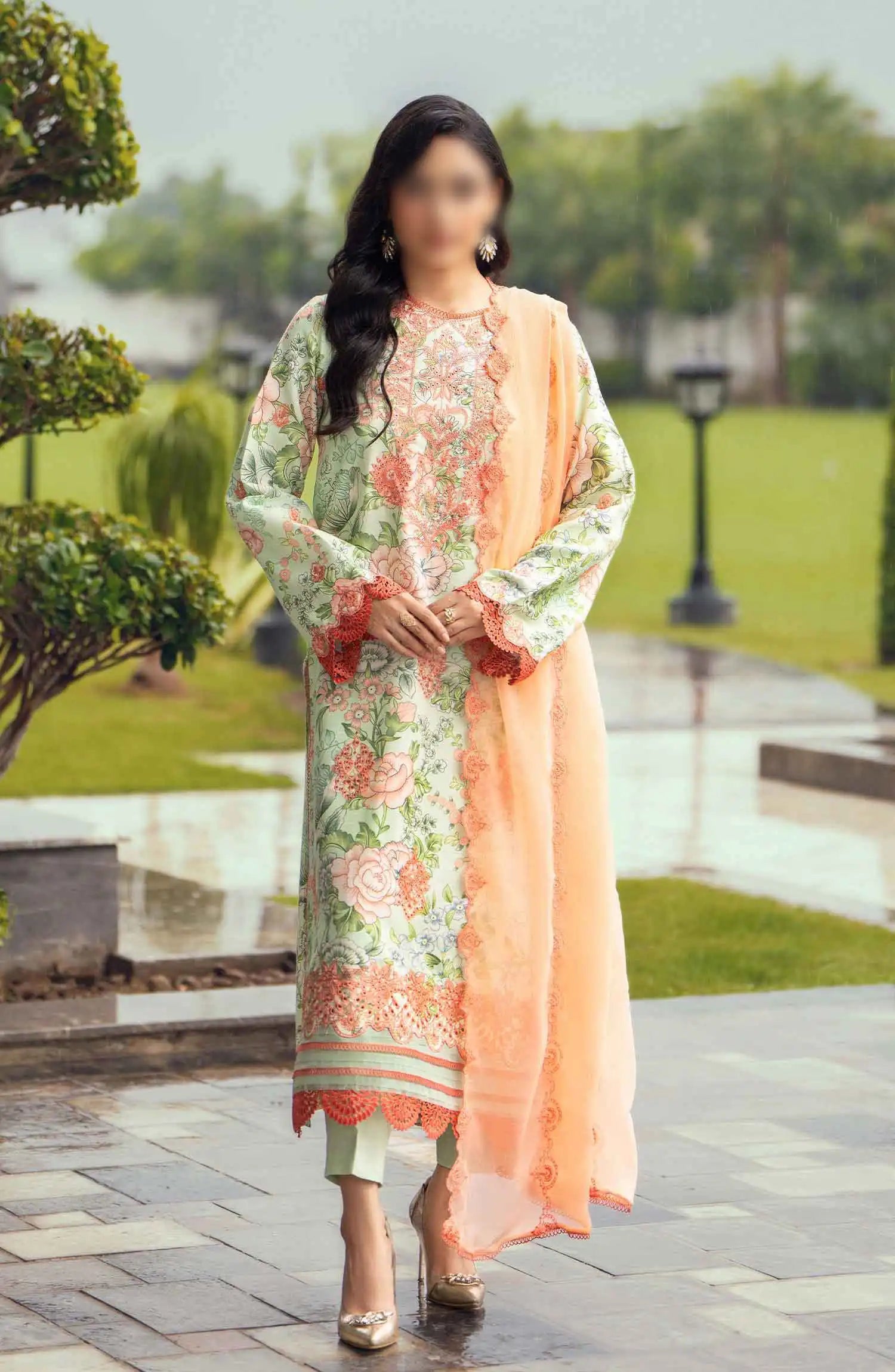 Maryams Luxury Embroidered Chiffon Unstitched 3 Piece Suit - Eilees-ARZ-8006 - MAR25LF - Blue - Festive Collection