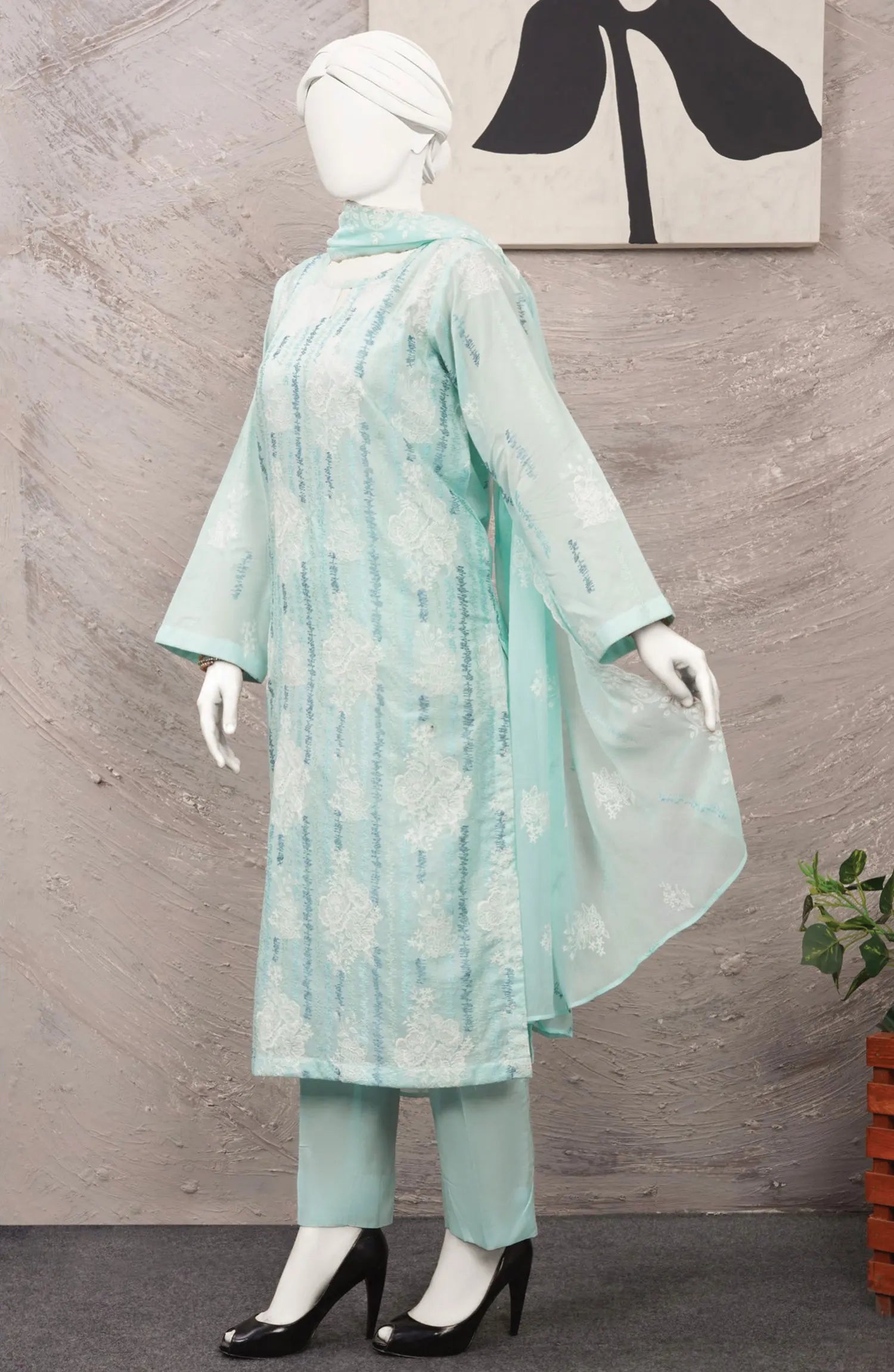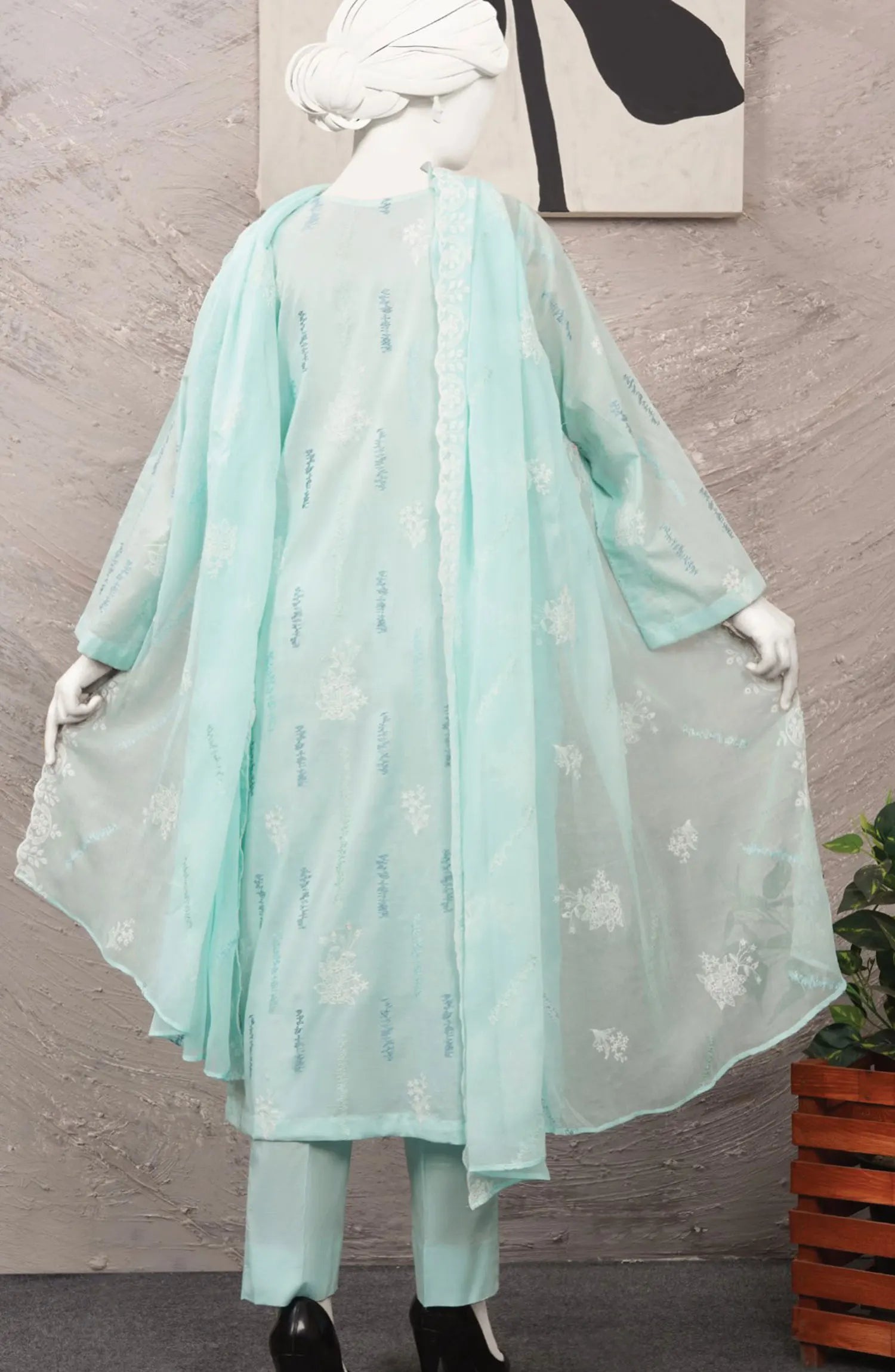 Dukhtar Embroidered Lawn Collection 2024 has been styled in the image for photography and illustrative purposes.