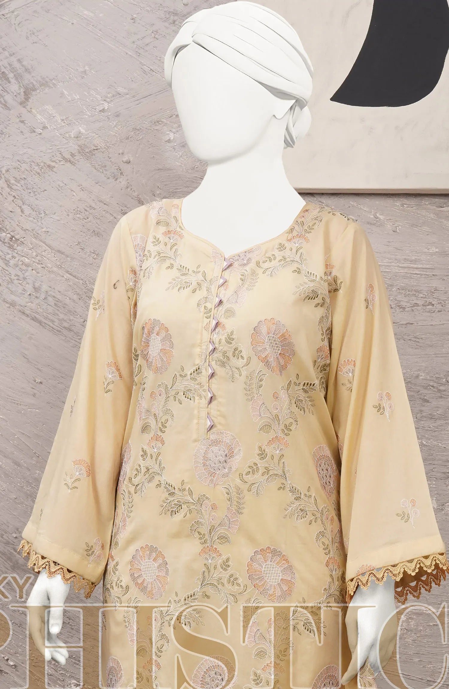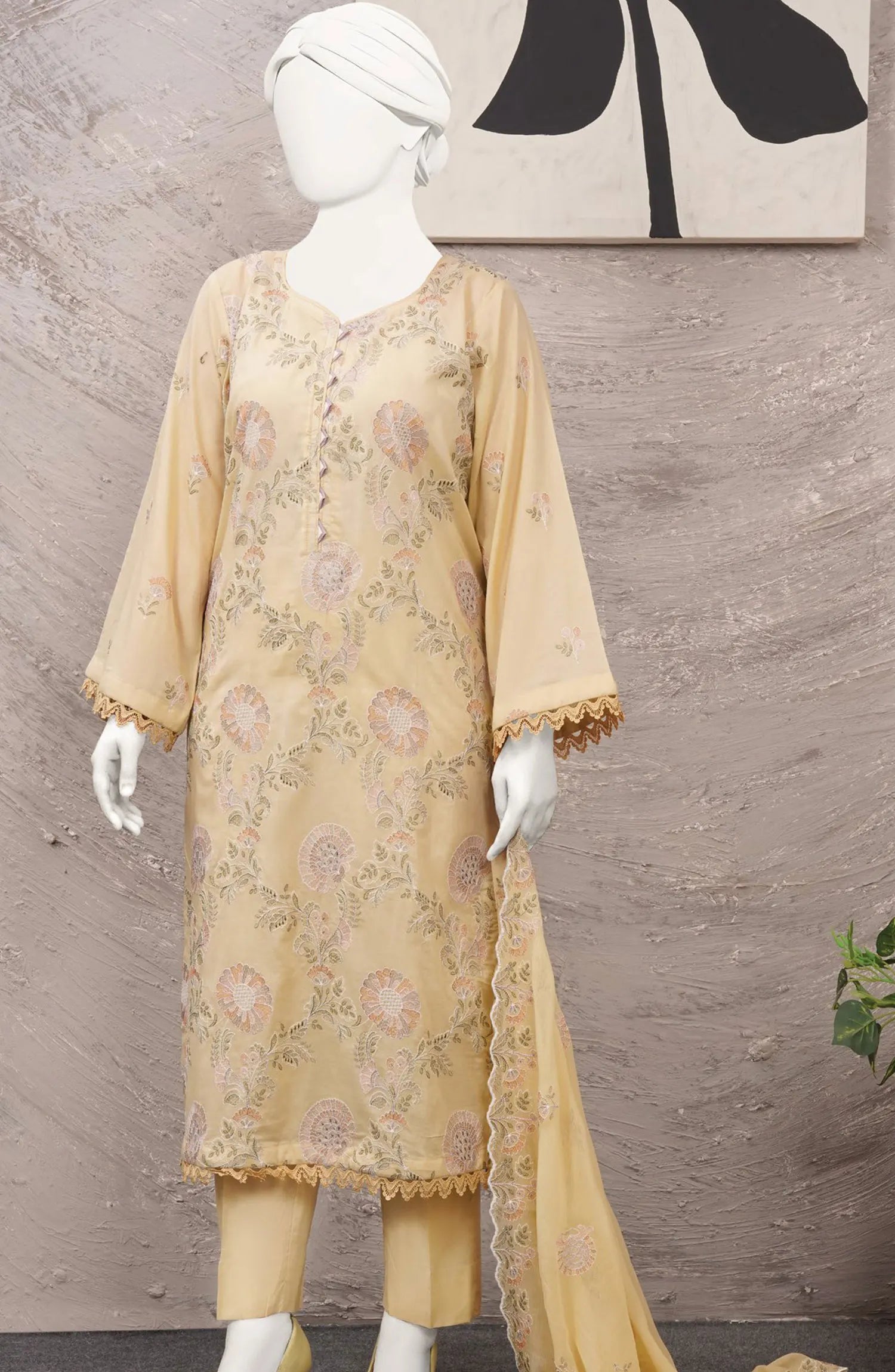 AJR Garden Whisper Embroidered Silk Unstitched 3 Piece Suit - AJR-GW-06 LUMIERE - AJR25GW - Beige - Luxury Collection
