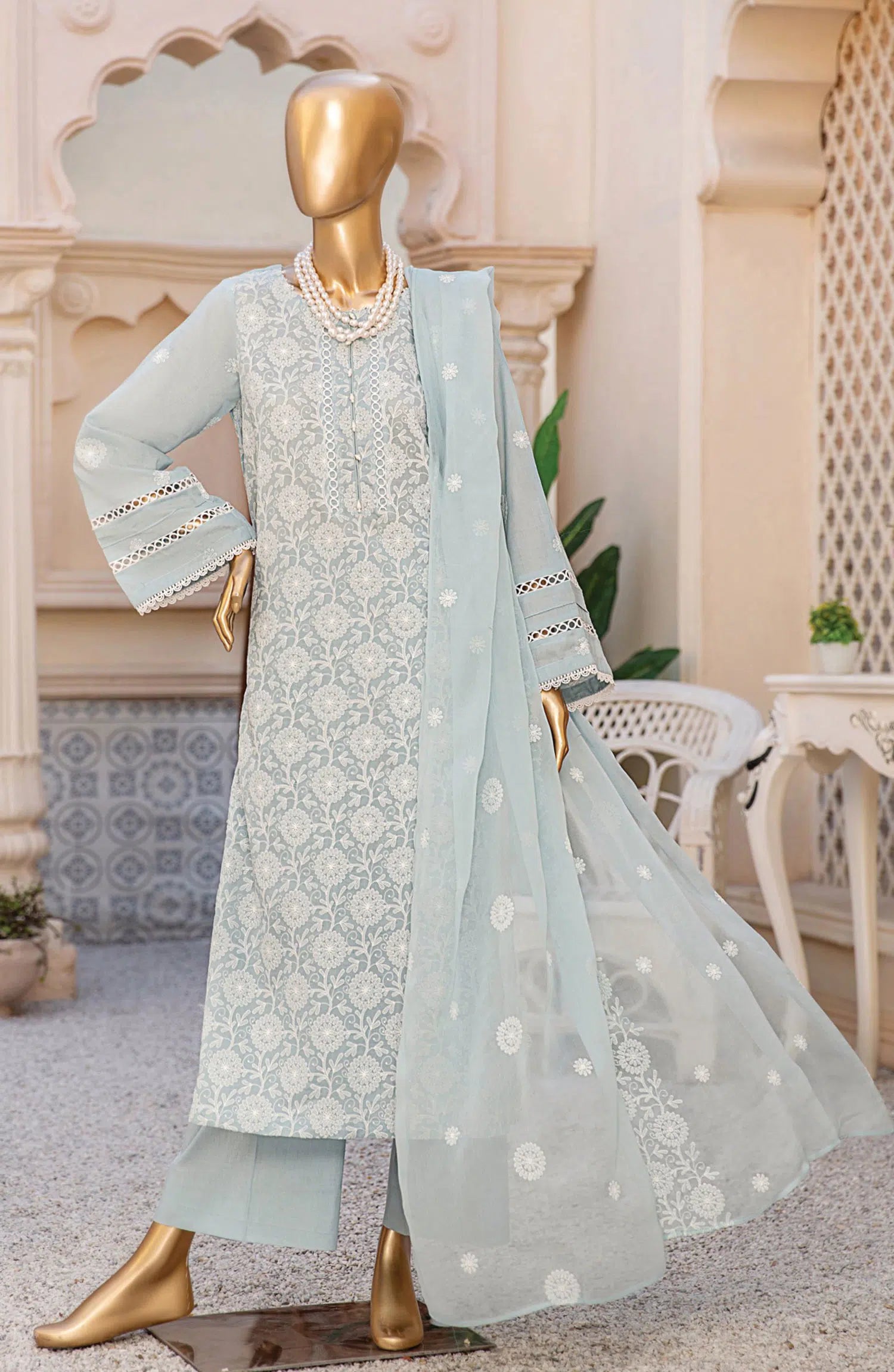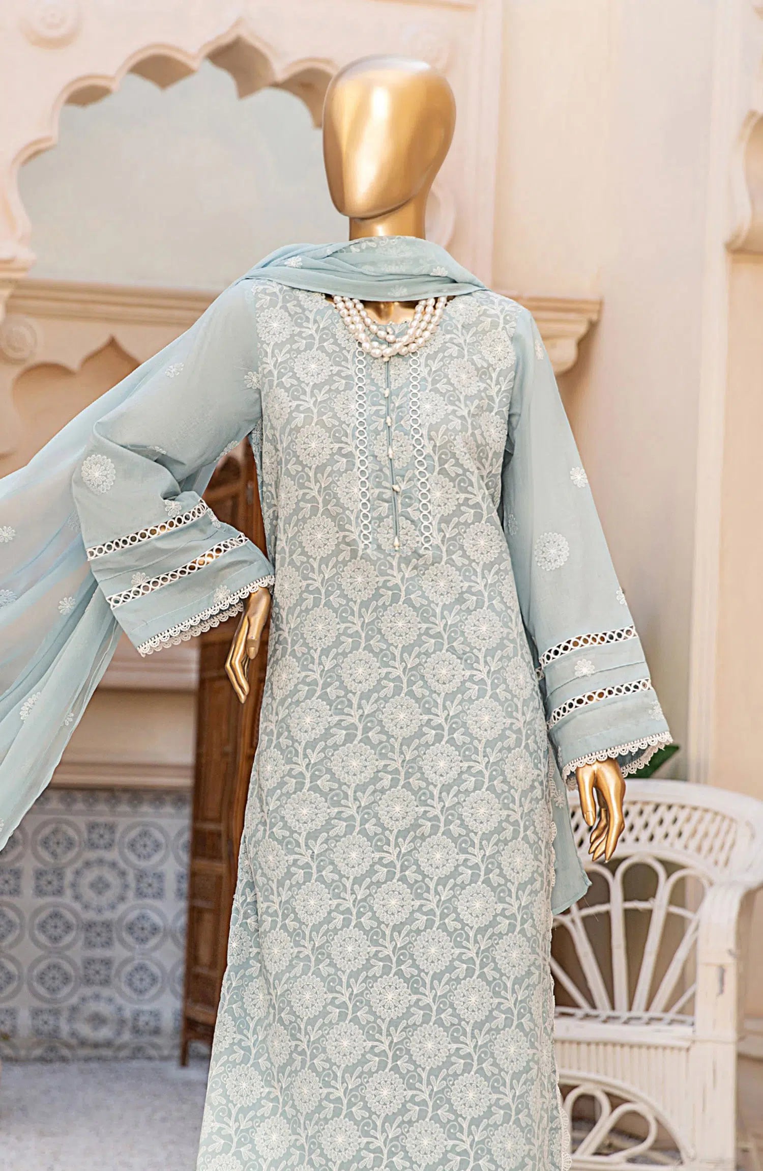 Dukhtar Lawn Embroidered Collection 2024 has been styled in the image for photography and illustrative purposes.