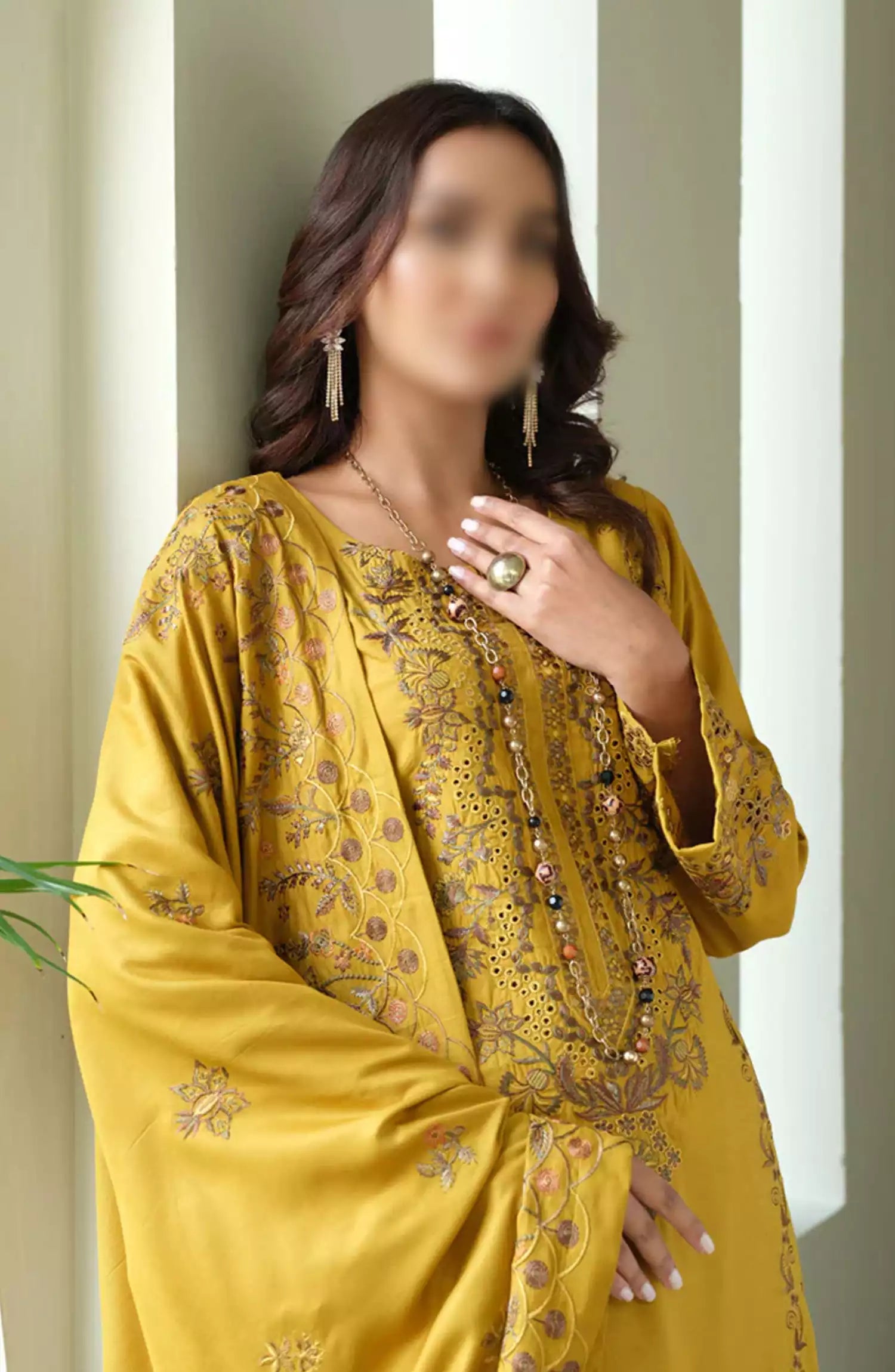 Dyed Linen Embroidered Collection by Marjjan - ML-247 (MUSTARD)