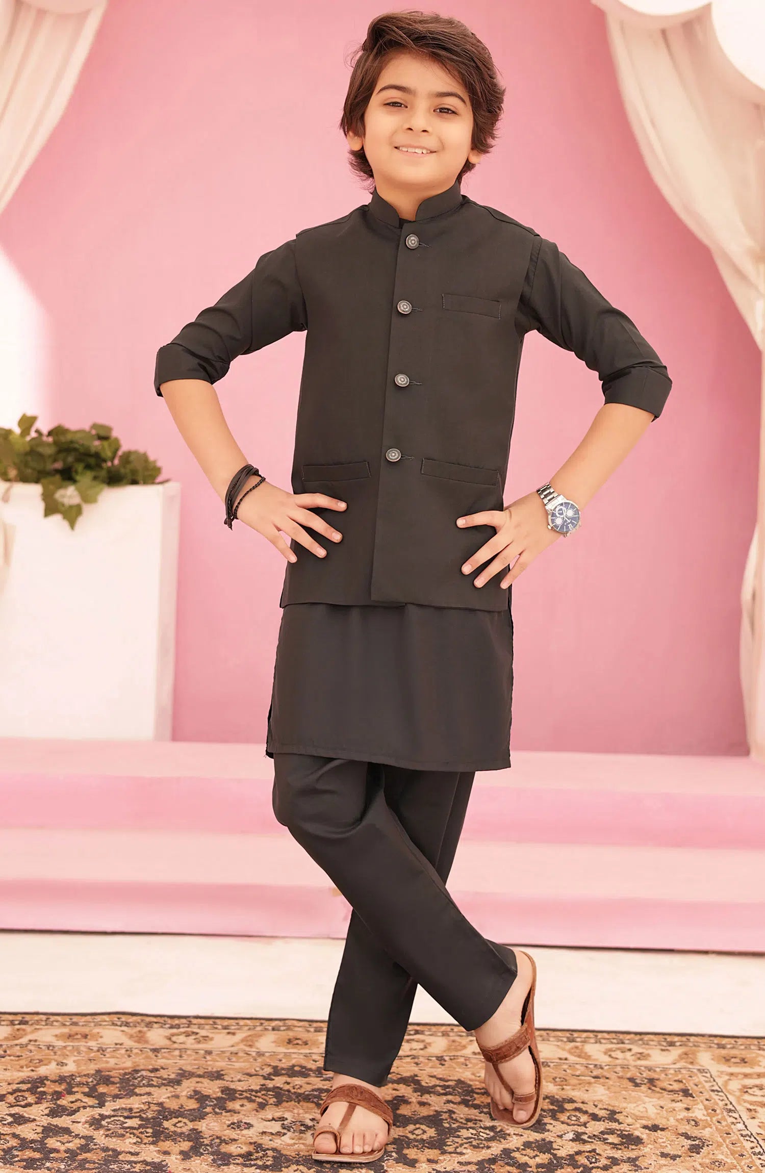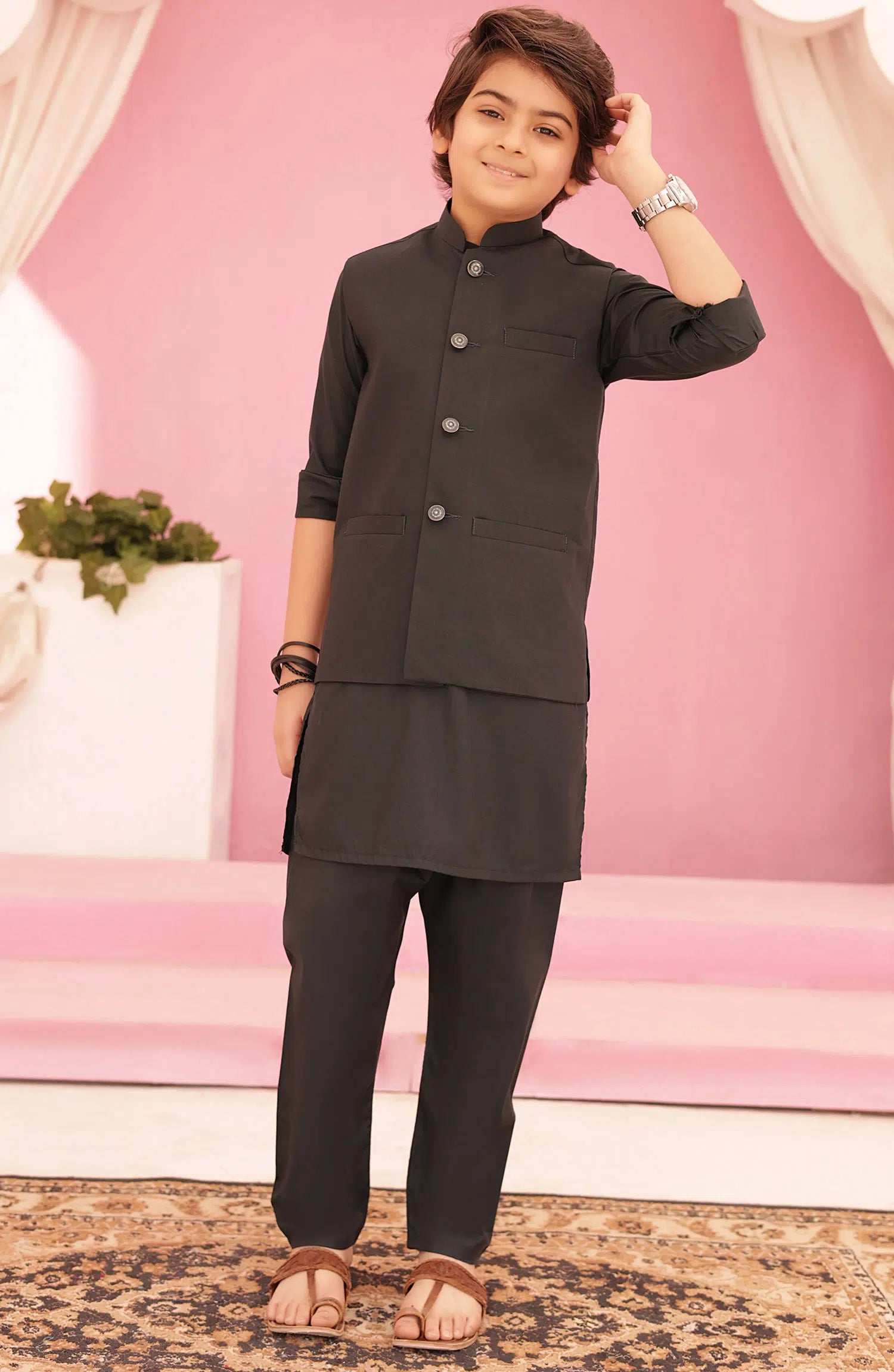 SKU: EW 05 Charcoal Black Waistcoat Suit-5 Yrs