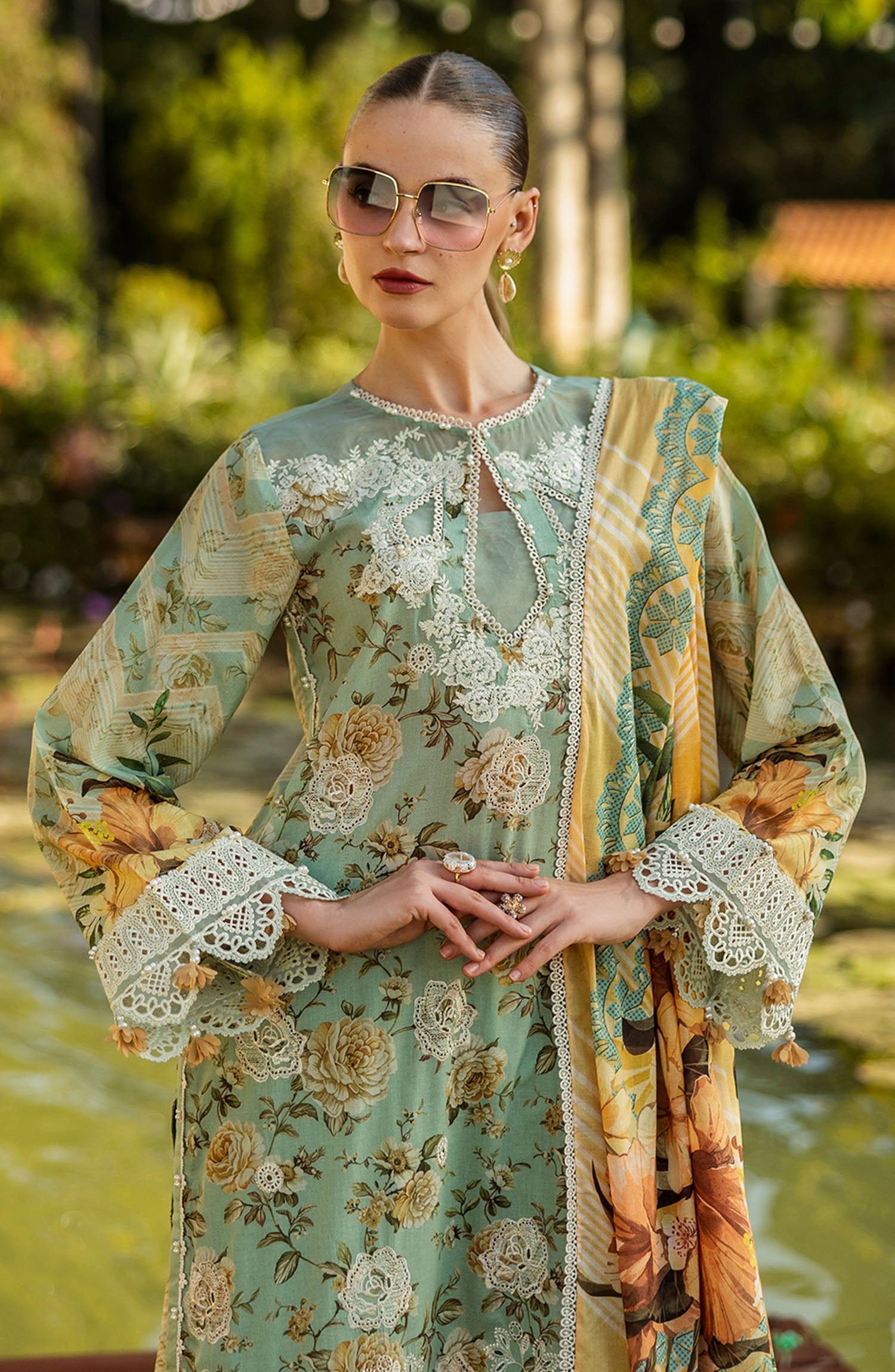 Home Elaf Chikankari Lawn Unstitched 3 Piece Suit - E L K - 0 6 A Pistachio Dreams - EL25PC - Green - Summer Collection
