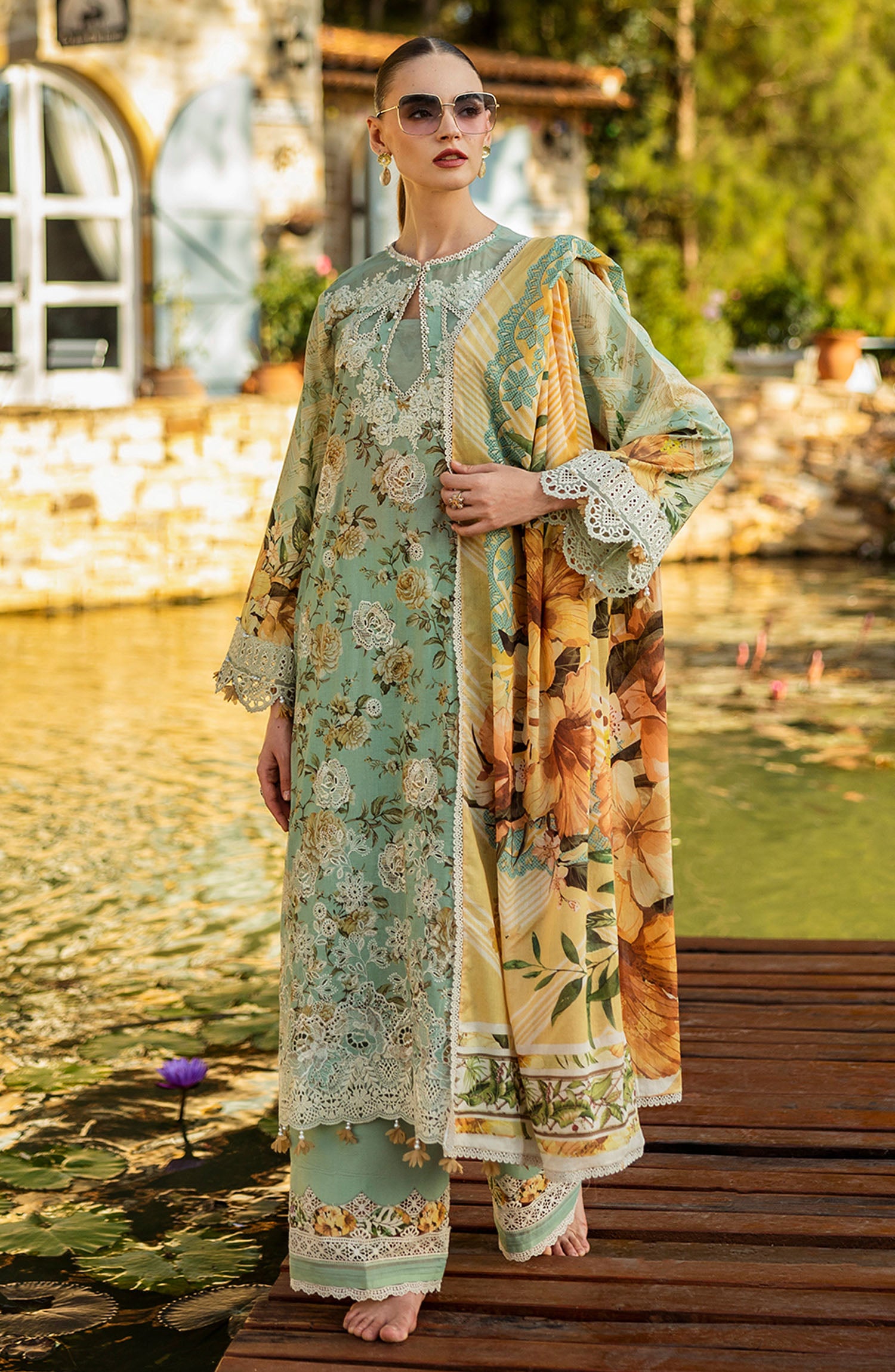 Elaf Chikankari Lawn Unstitched 3 Piece Suit - E L K - 0 6 A Pistachio Dreams - EL25PC - Green - Summer Collection