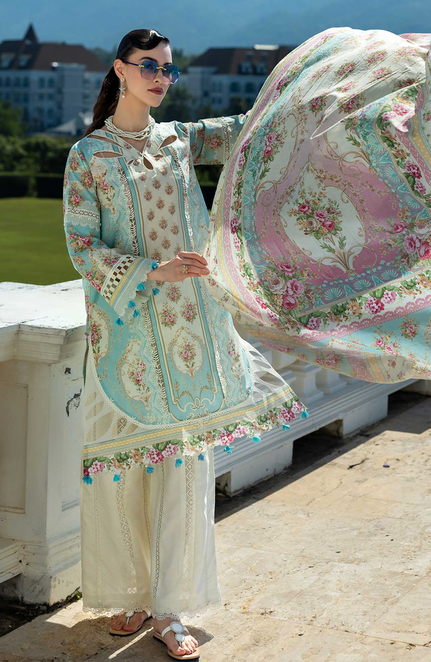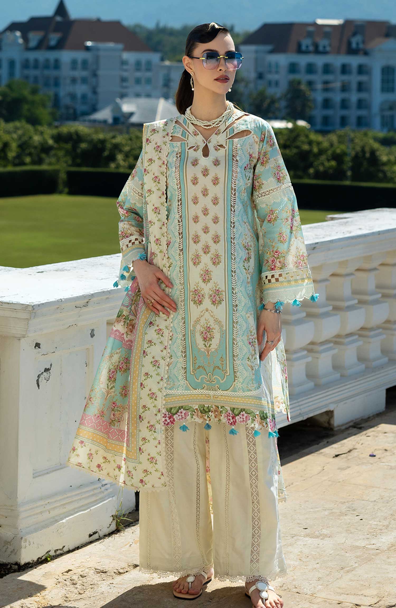 Elaf Embroidered Lawn Unstitched 3 Piece - EP 03 B - EL25L - Blue - Summer Collection