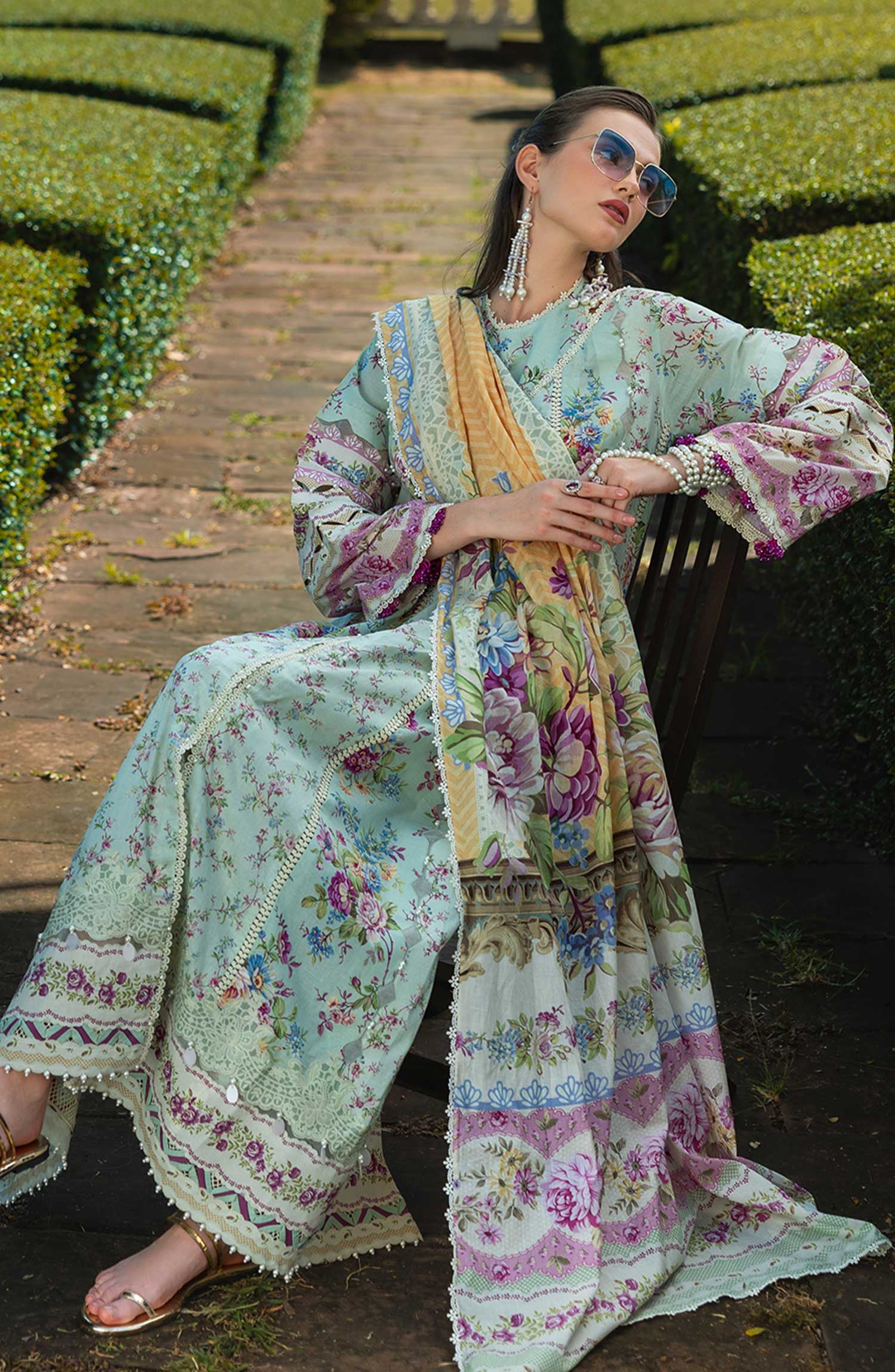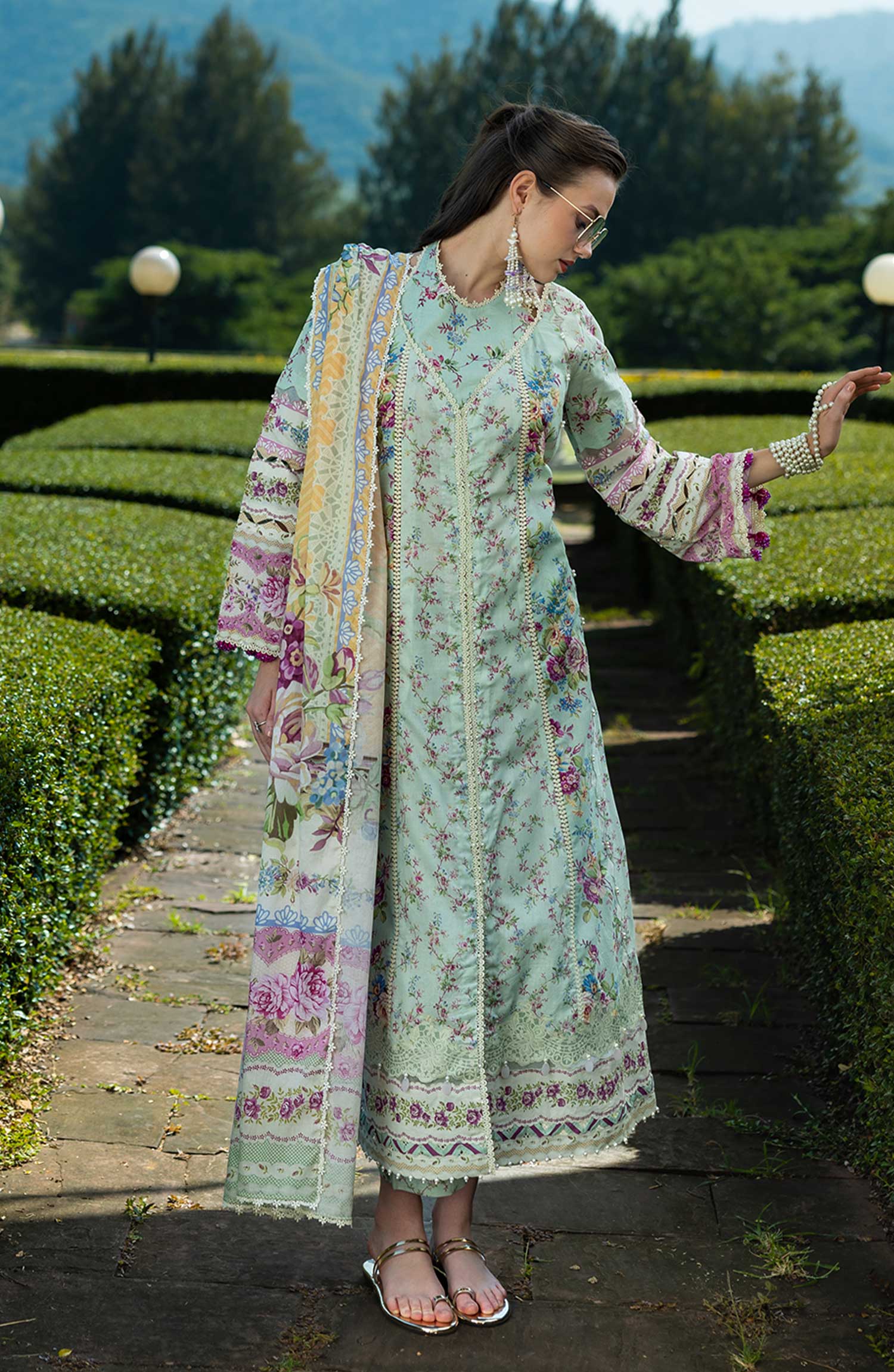 Elaf Embroidered Lawn Unstitched 3 Piece - EP 07 A - EL25L - Light Blue - Summer Collection
