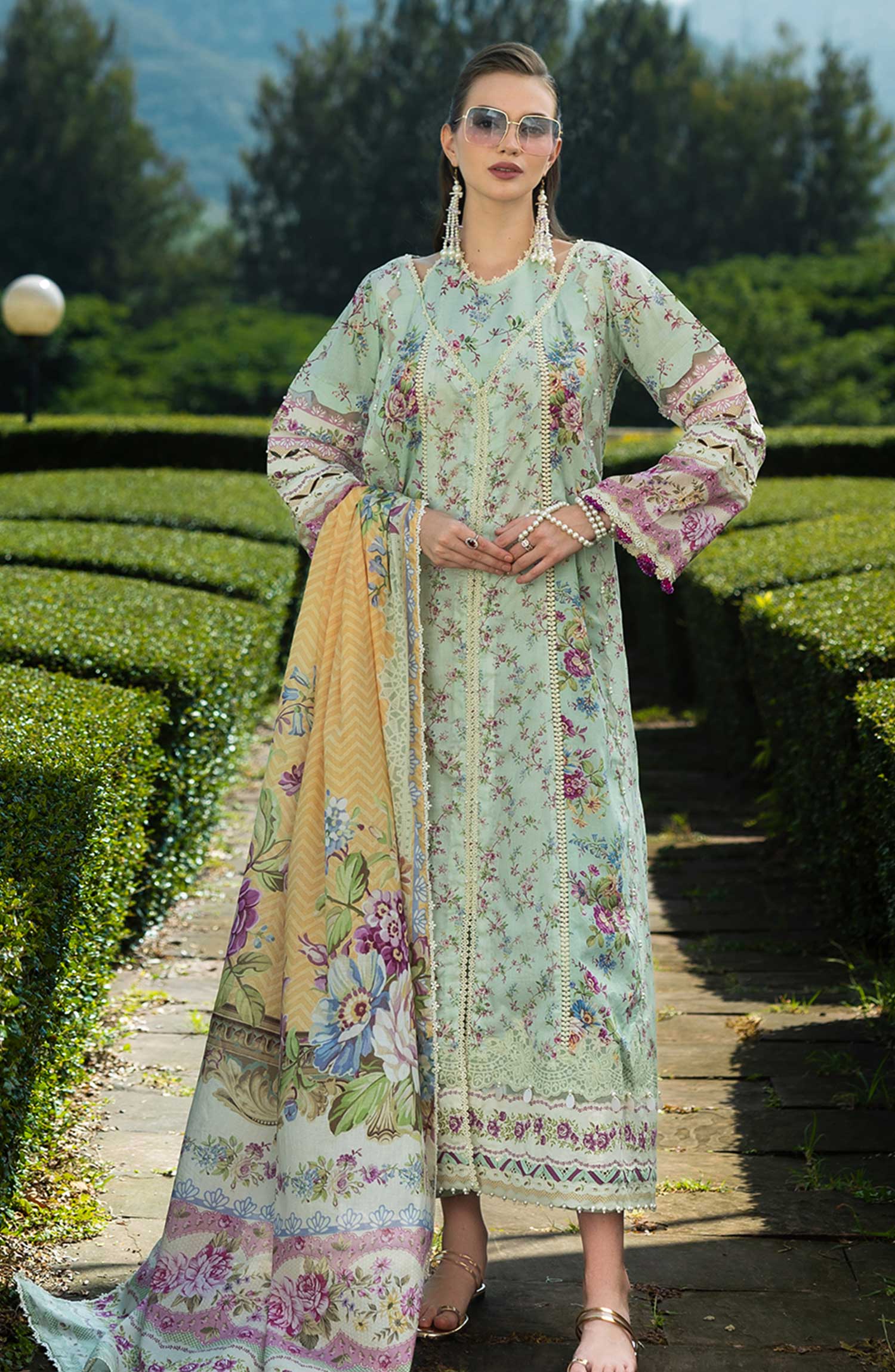 Shanzey Printed Cambric Stitched 3 Piece Suit - SHK-4905 - SHZ25CAM - Sea Green - Girls Winter Collection
