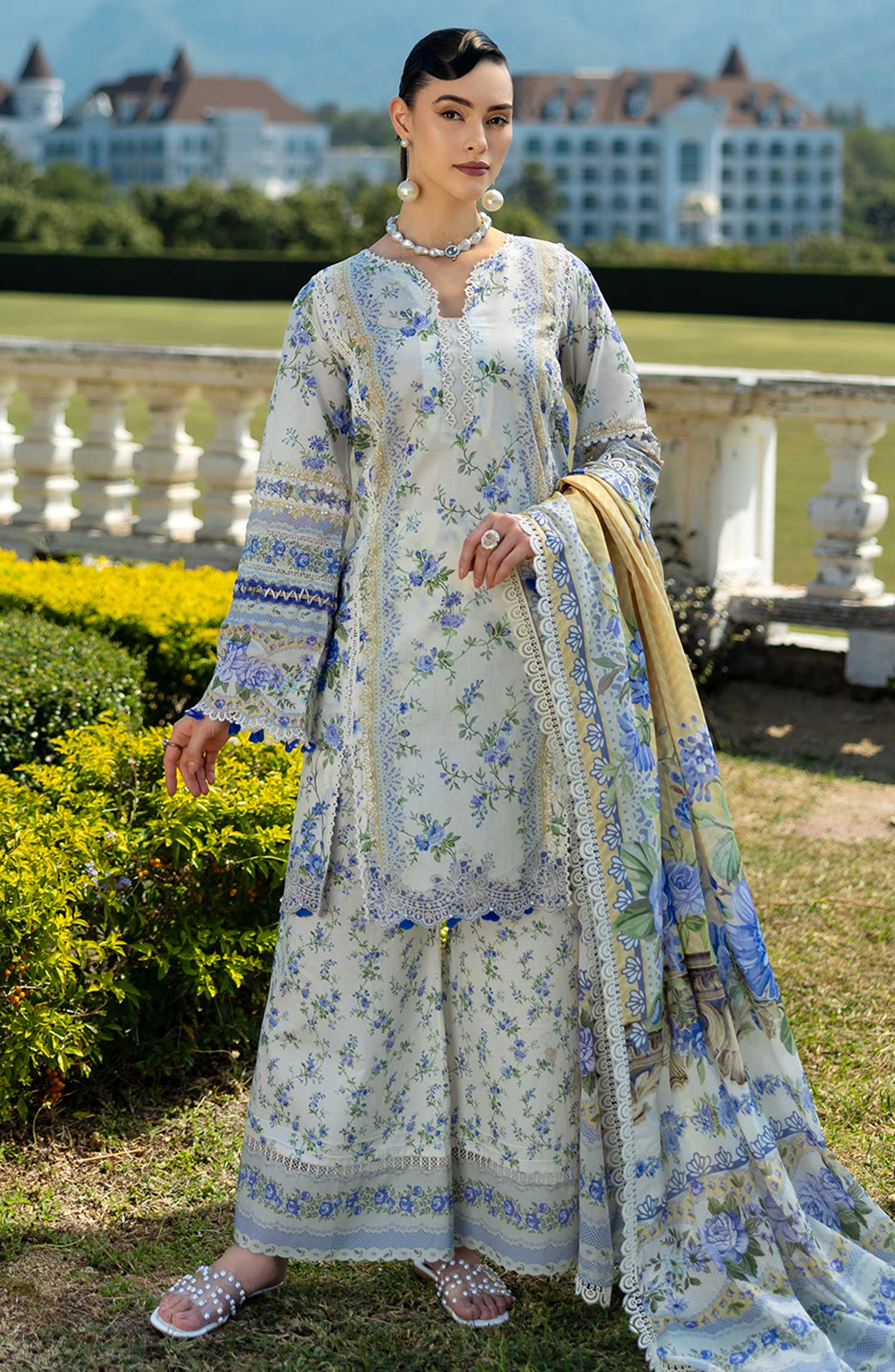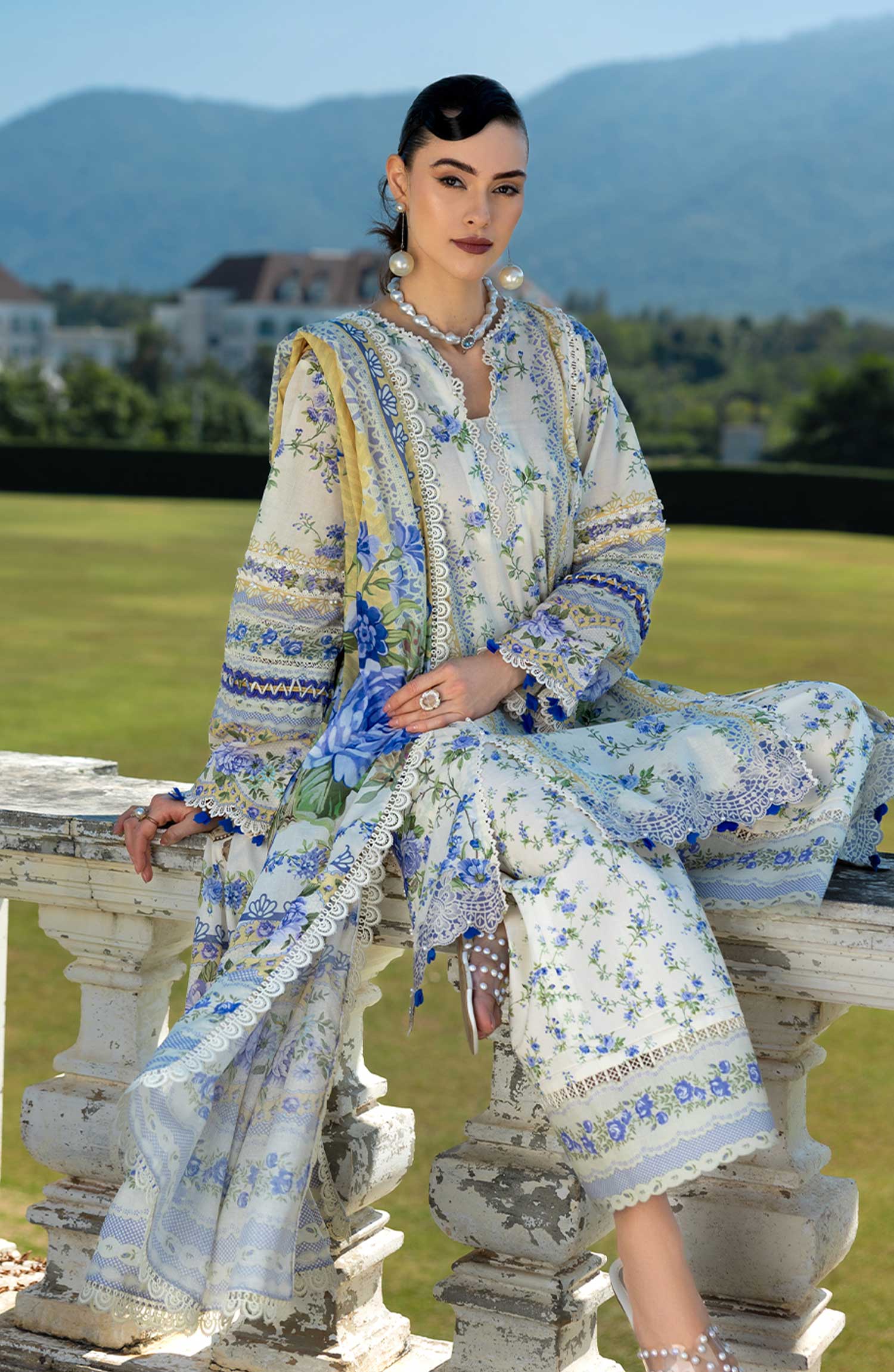 Elaf Prints Printed Lawn Collection 2025 has been styled in the image for photography and illustrative purposes.