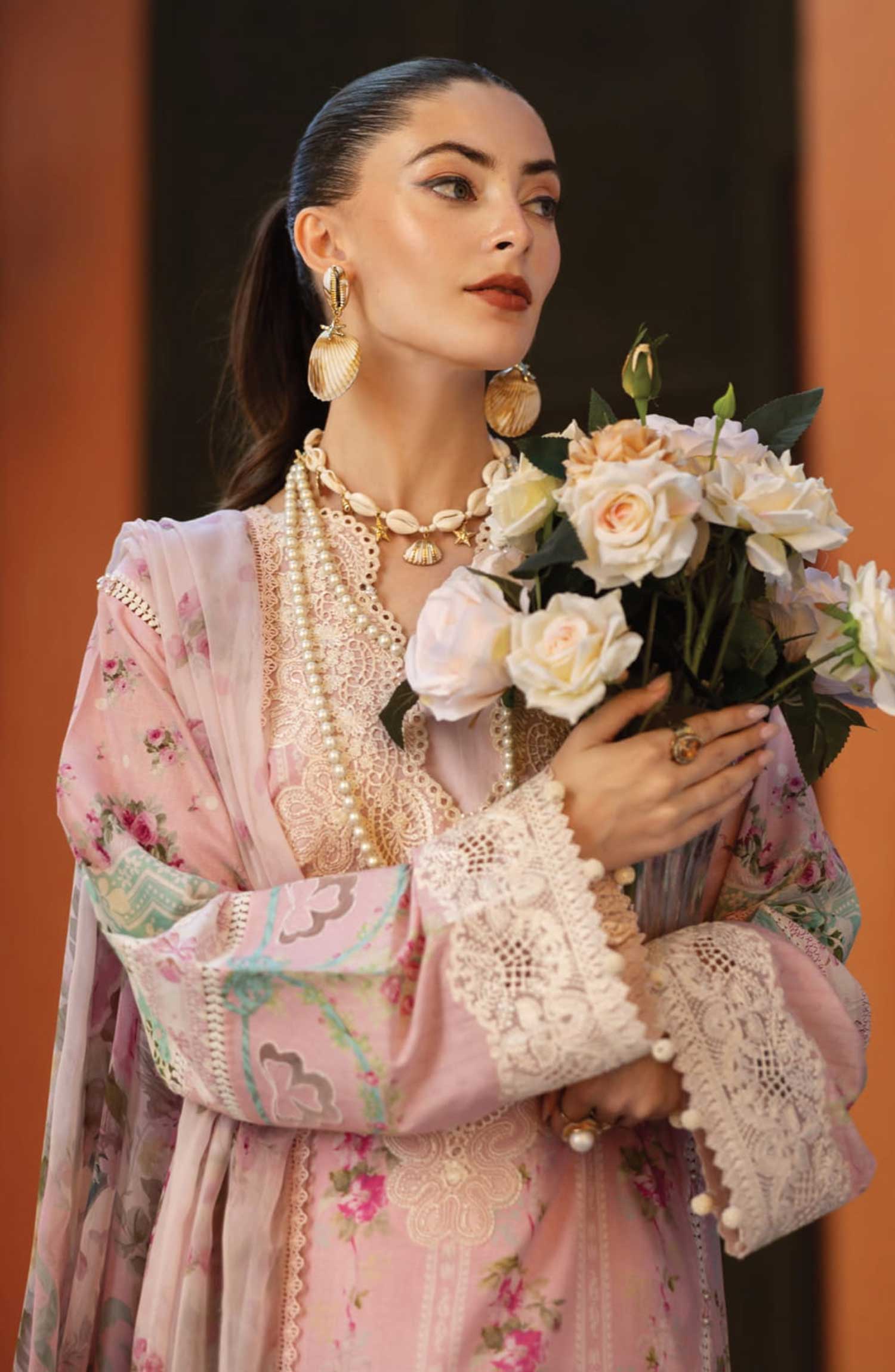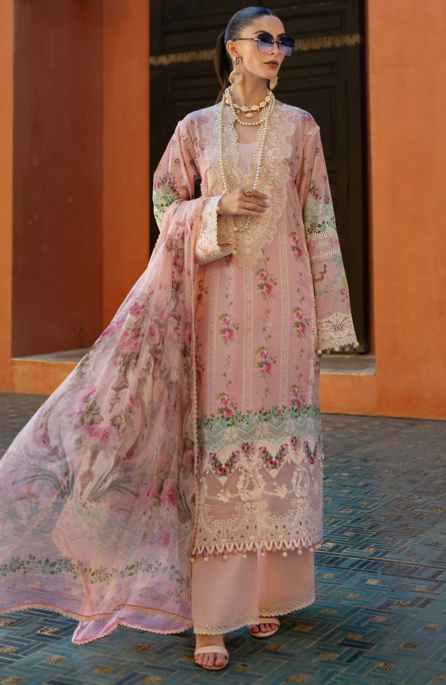 Elaf Embroidered Lawn Unstitched 3 Piece - ETS 01B PINK PETAL - EL25SL - Pink - Summer Collection