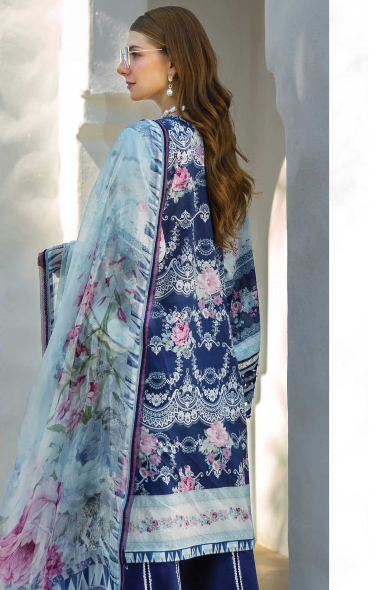 Home Elaf Embroidered Lawn Unstitched 3 Piece - ETS 06A LONDON BLUES - EL25SL - Royal Blue - Summer Collection