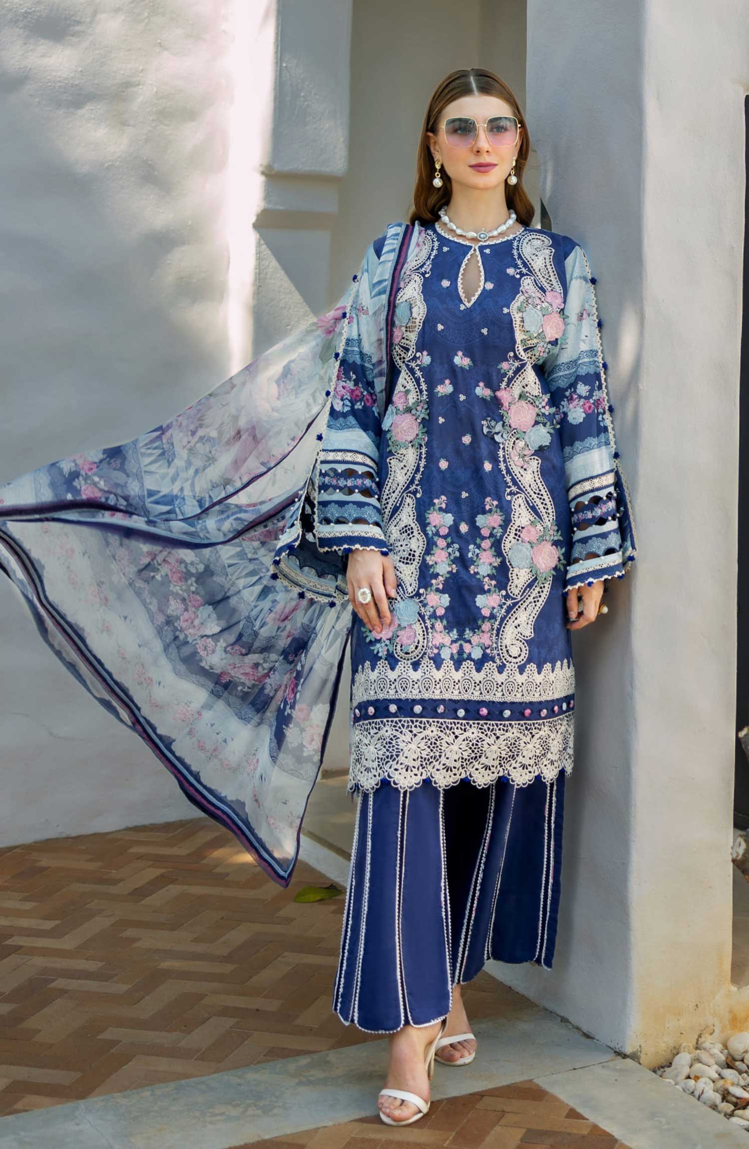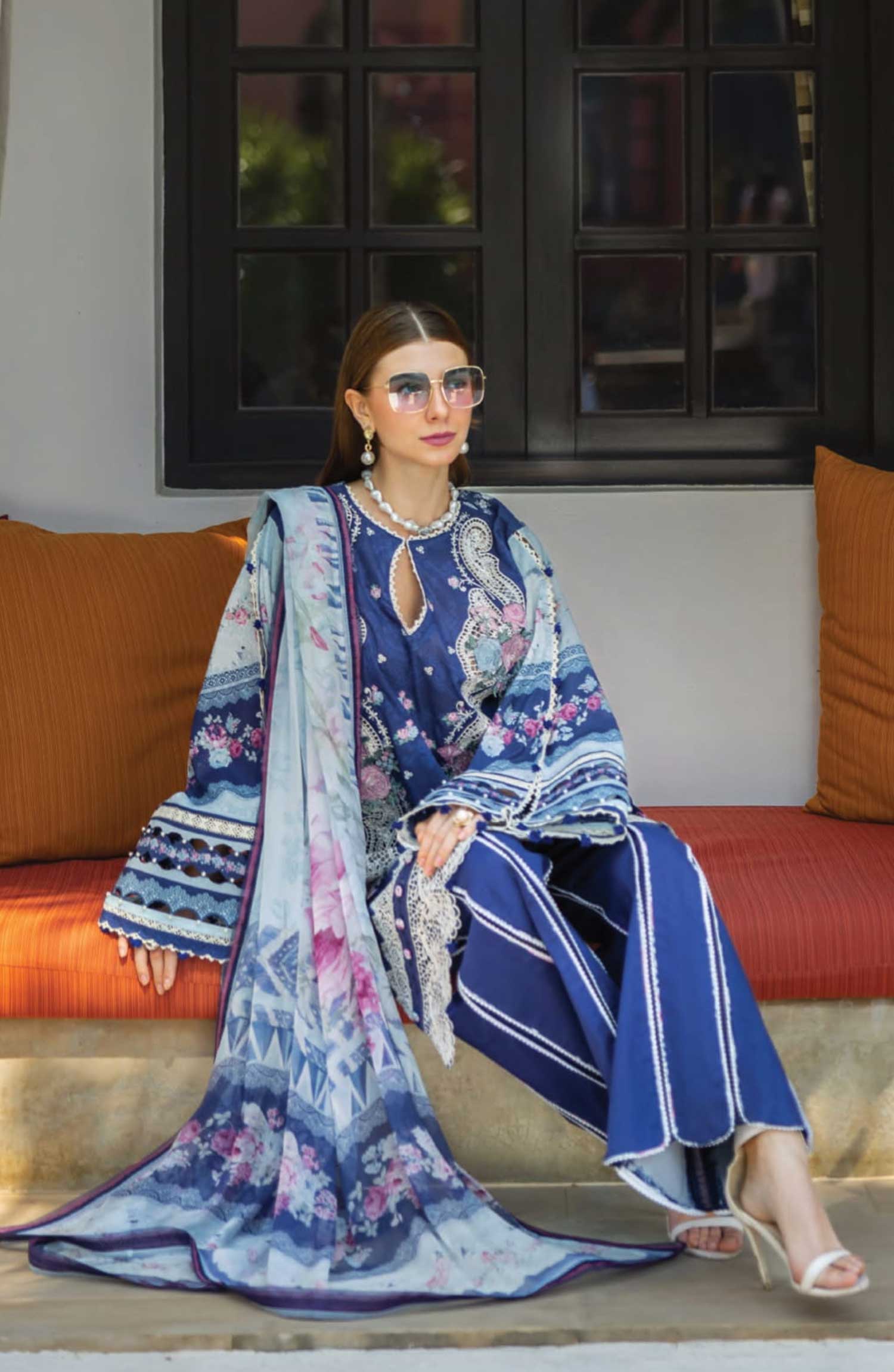 Elaf Embroidered Lawn Unstitched 3 Piece - ETS 06A LONDON BLUES - EL25SL - Royal Blue - Summer Collection