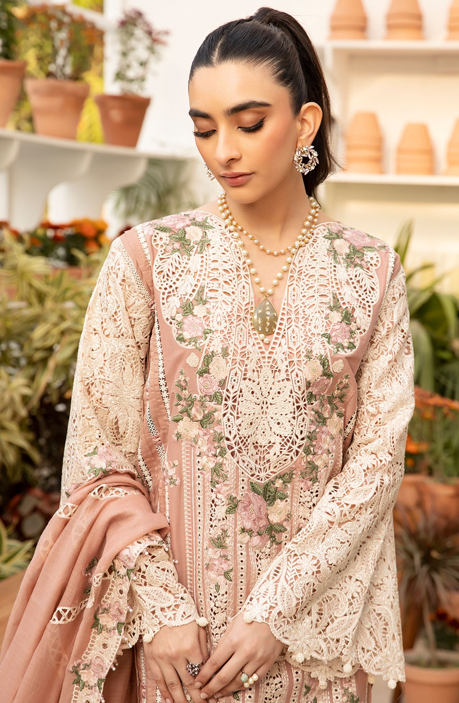 EMBROIDERED ORGANZA FRONT DAMAN BORDER