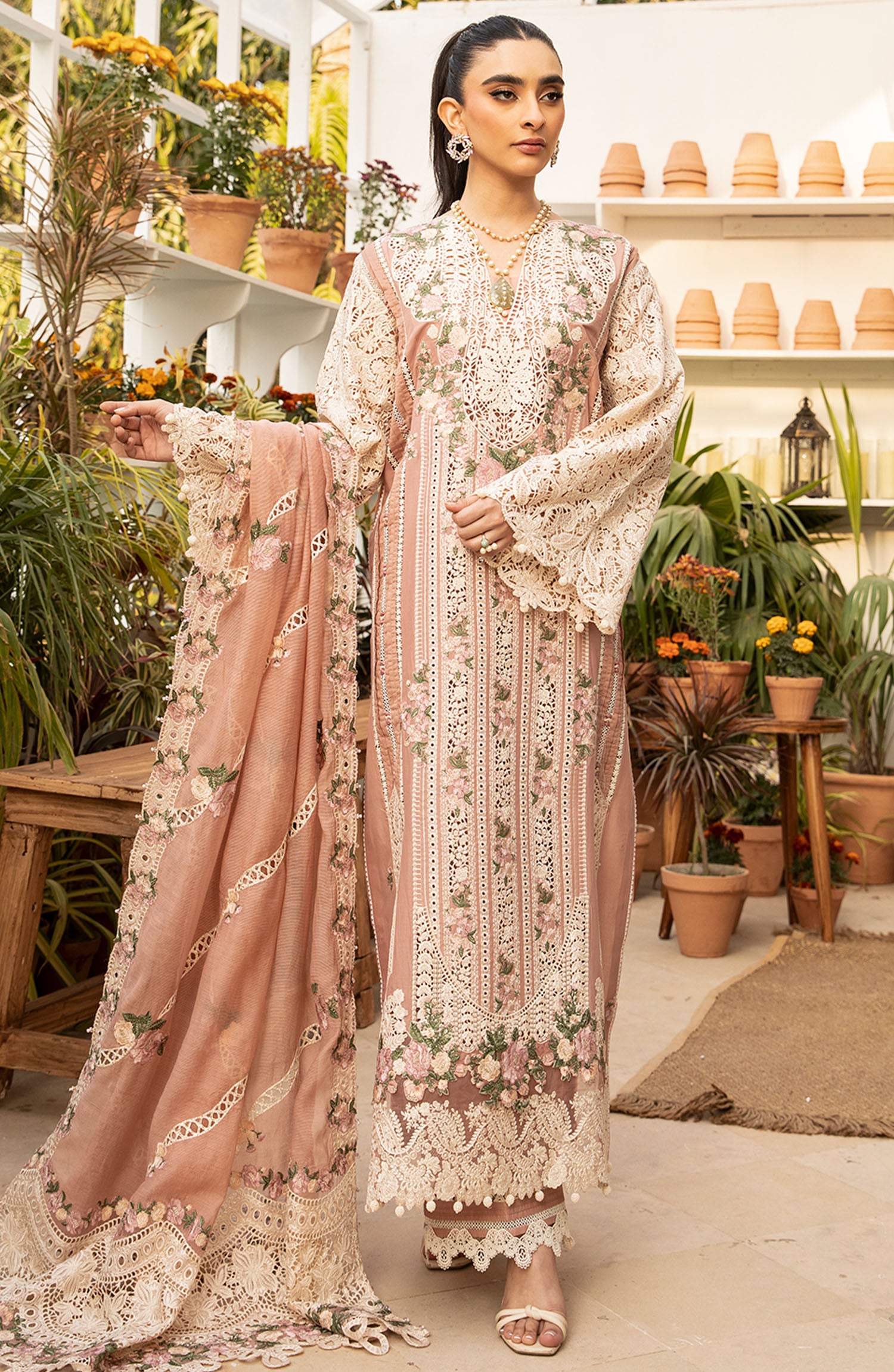 The standard style comes as a long-sleeved kameez with dupatta and trouser/shawlar.