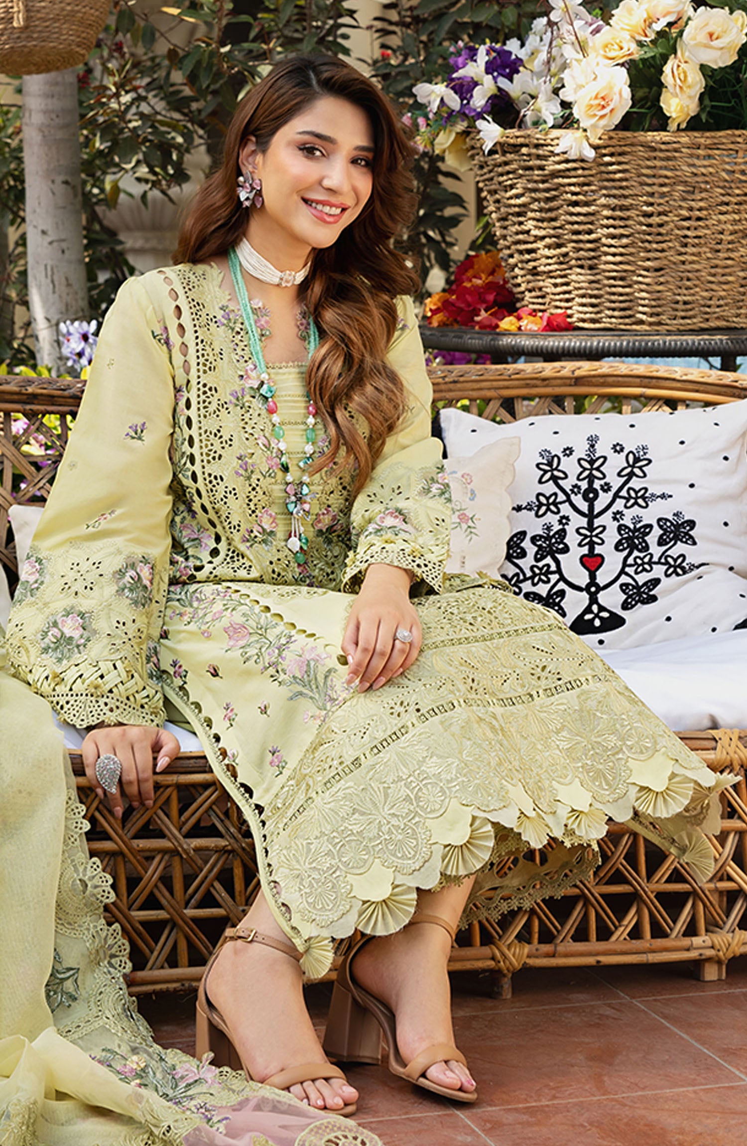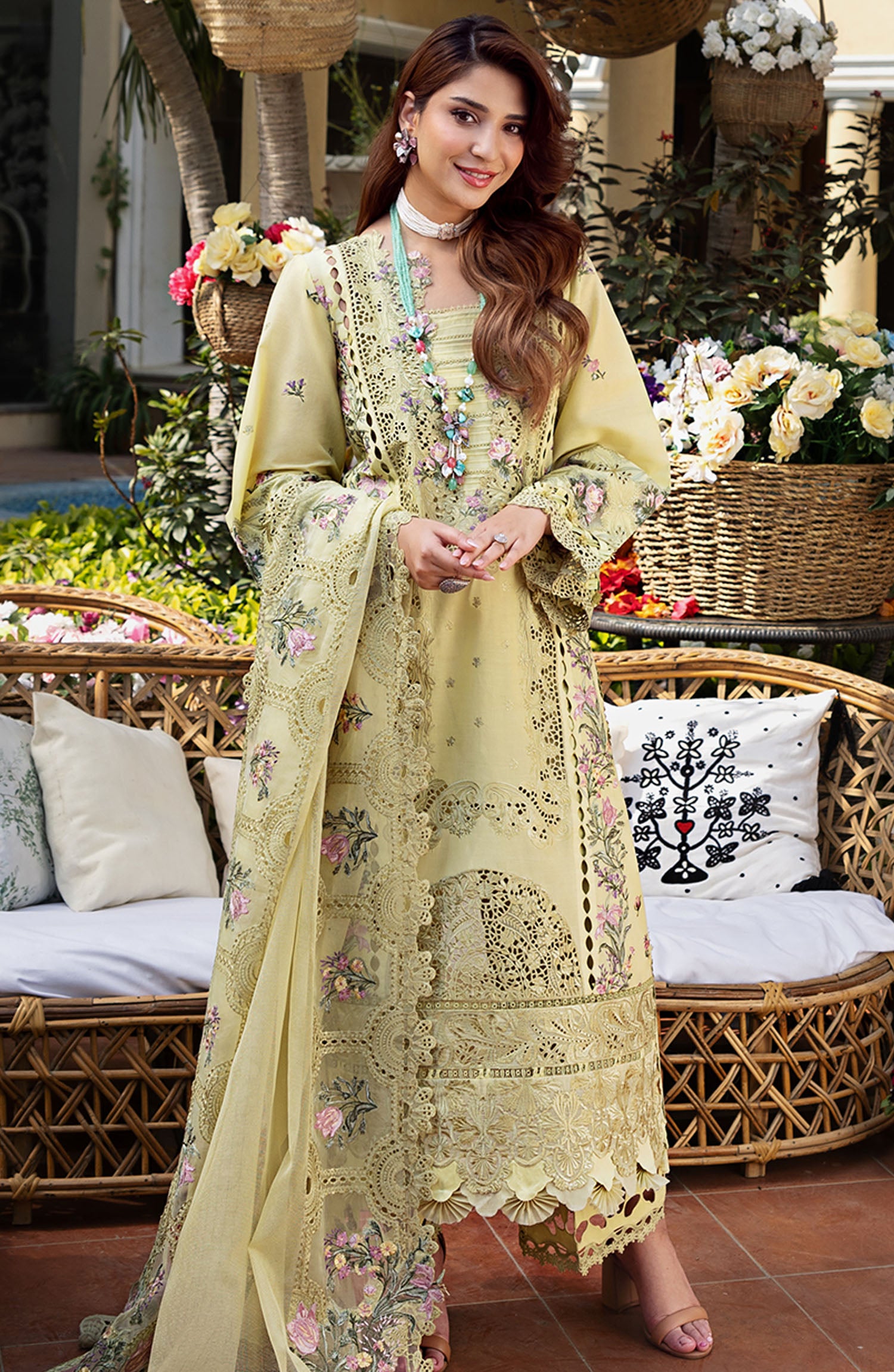 Elaf Embroidered Lawn Unstitched 3 Piece Suit - ELM-3A Bahaar - EL25LLC - Mustard - Summer Collection