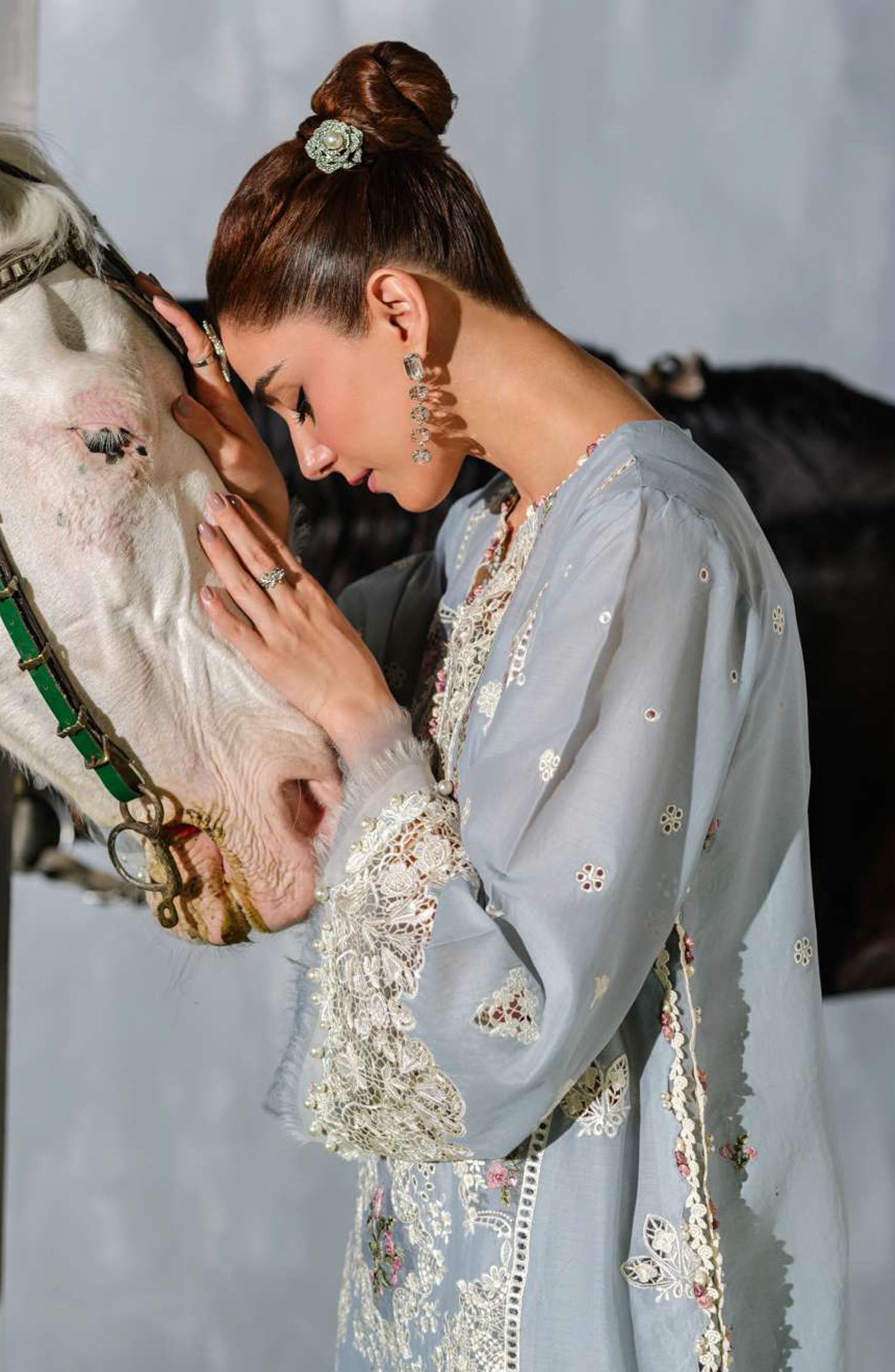 -EMBROIDERED LAWN LASERWORK SLEEVES 1 Pair