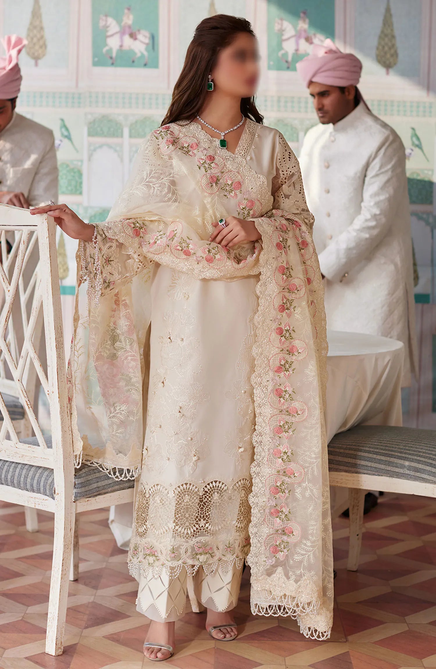 Elaf Premium Eid Edit Unstitched 2024 has been styled in the image for photography and illustrative purposes.