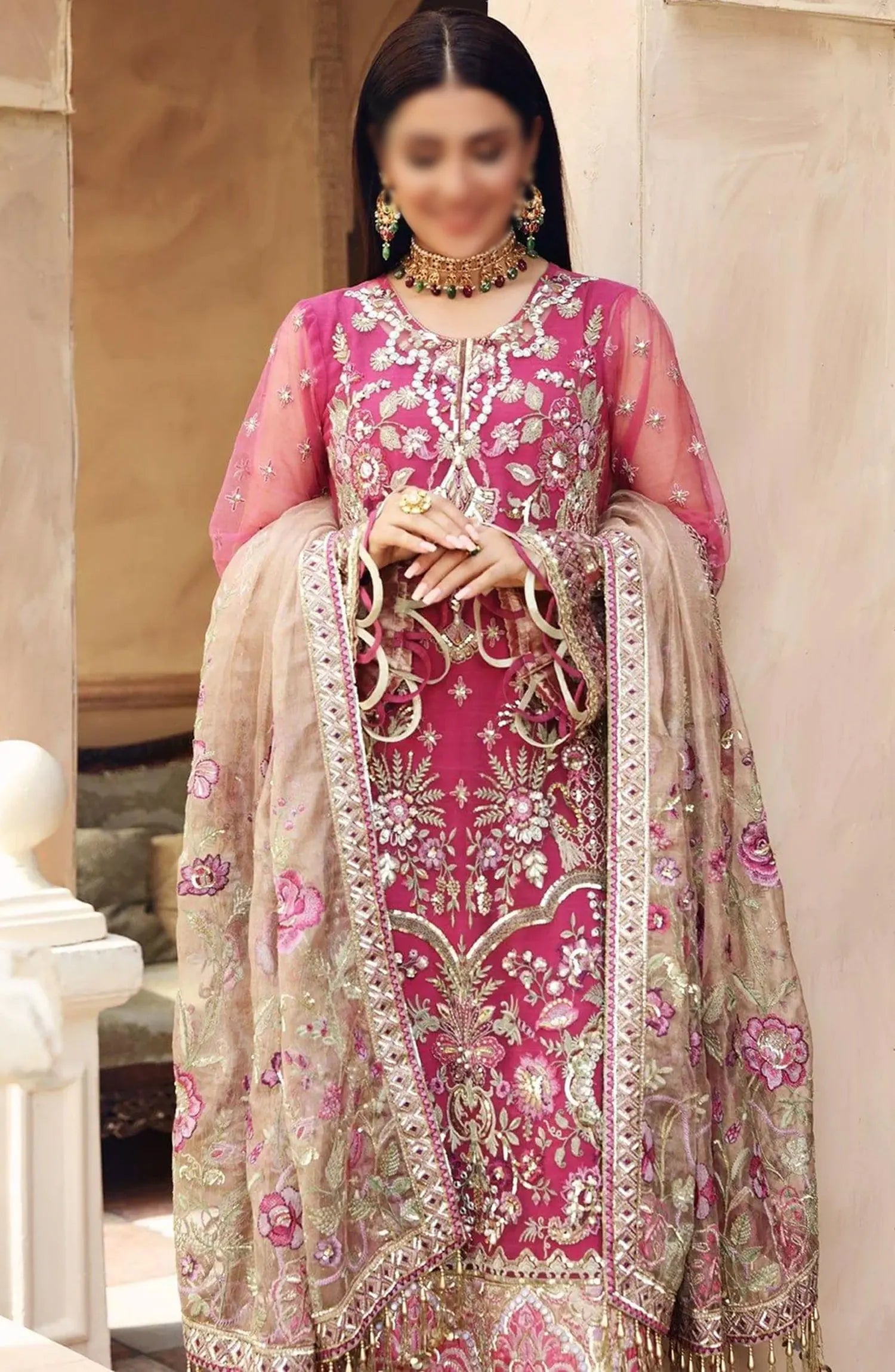 The standard style comes as a long-sleeved kameez with dupatta and trouser/shawlar.