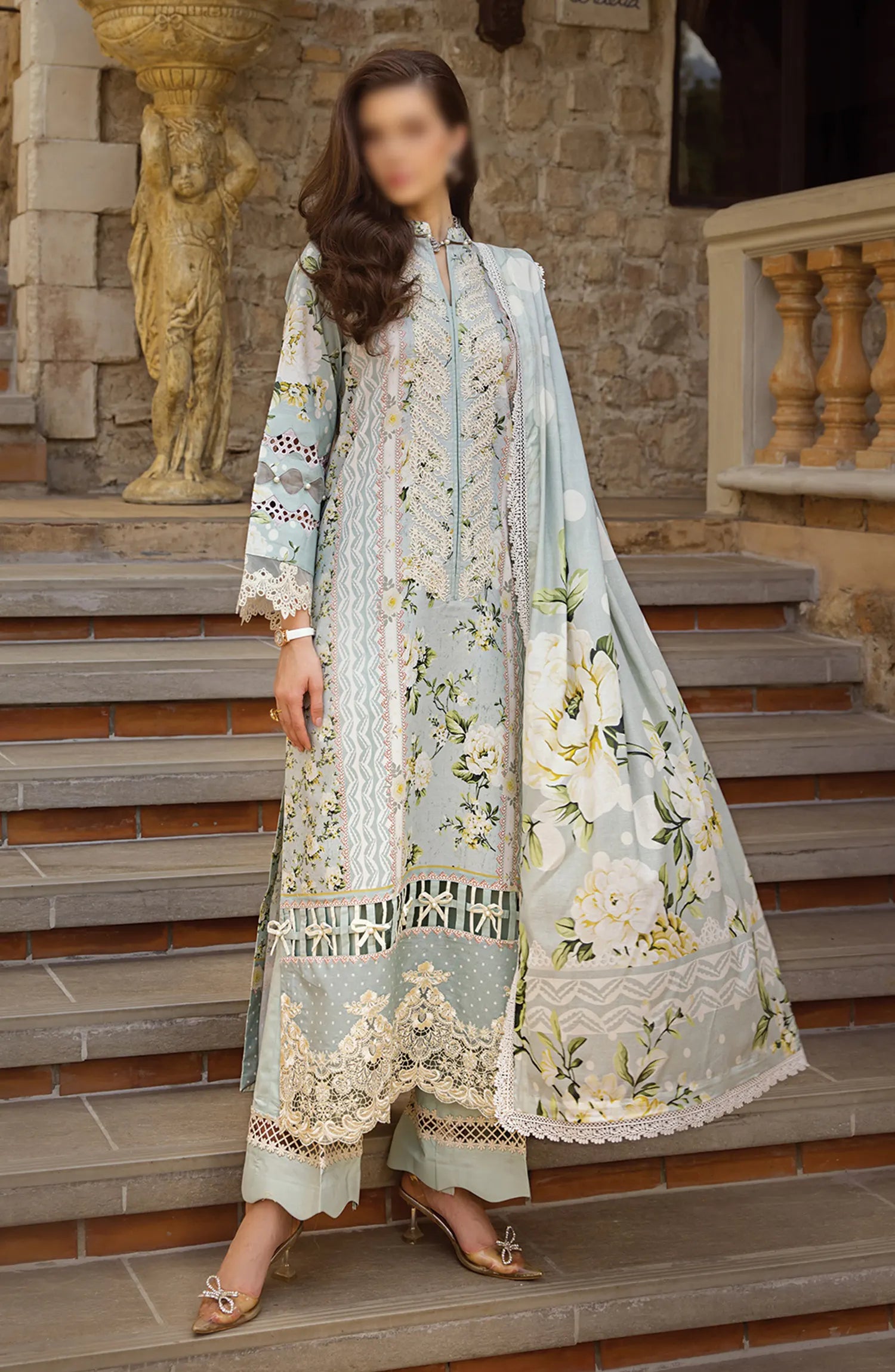 Maryams Luxury Embroidered Chiffon Unstitched 3 Piece Suit - Eilees-ARZ-8006 - MAR25LF - Blue - Festive Collection