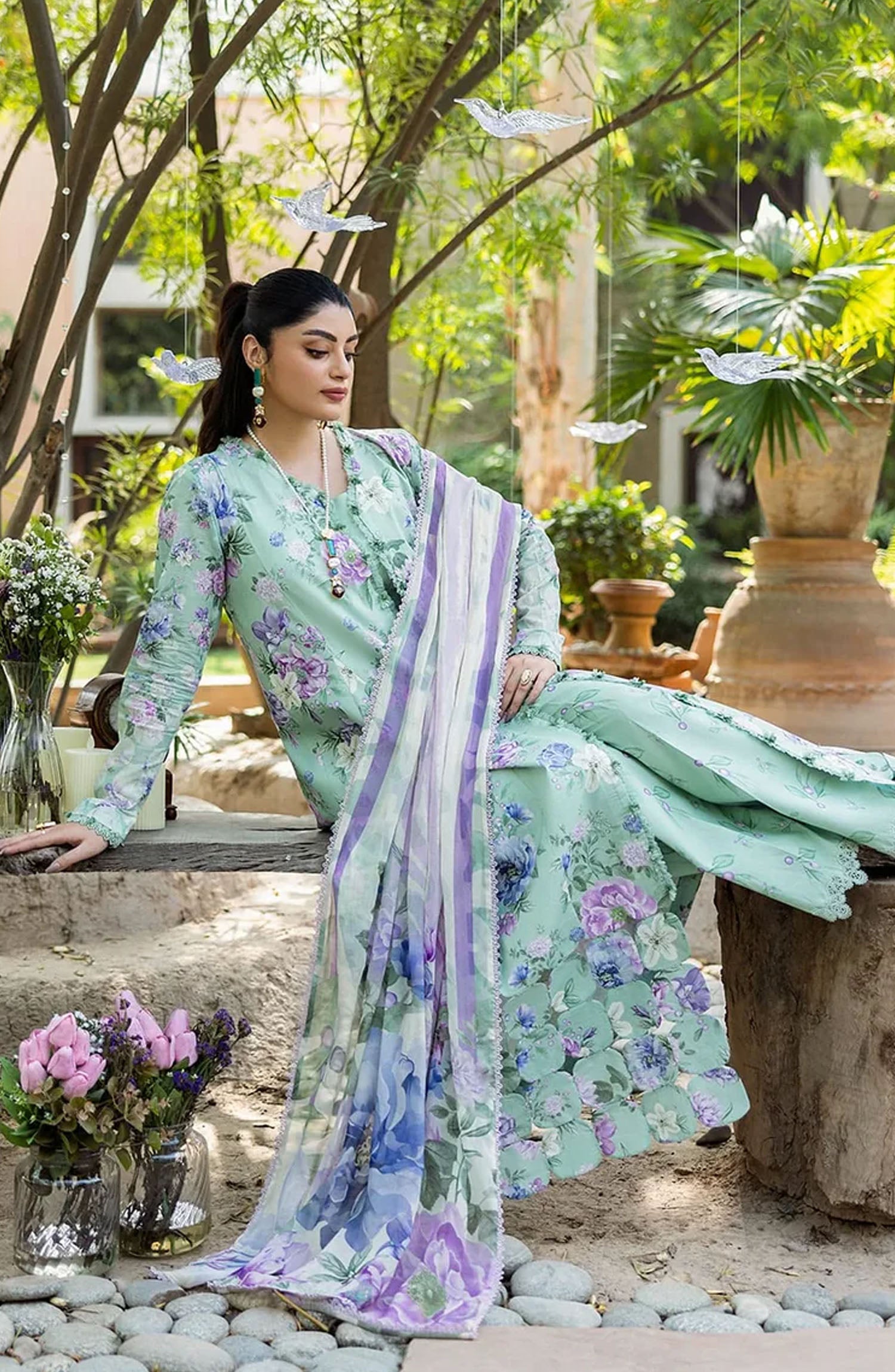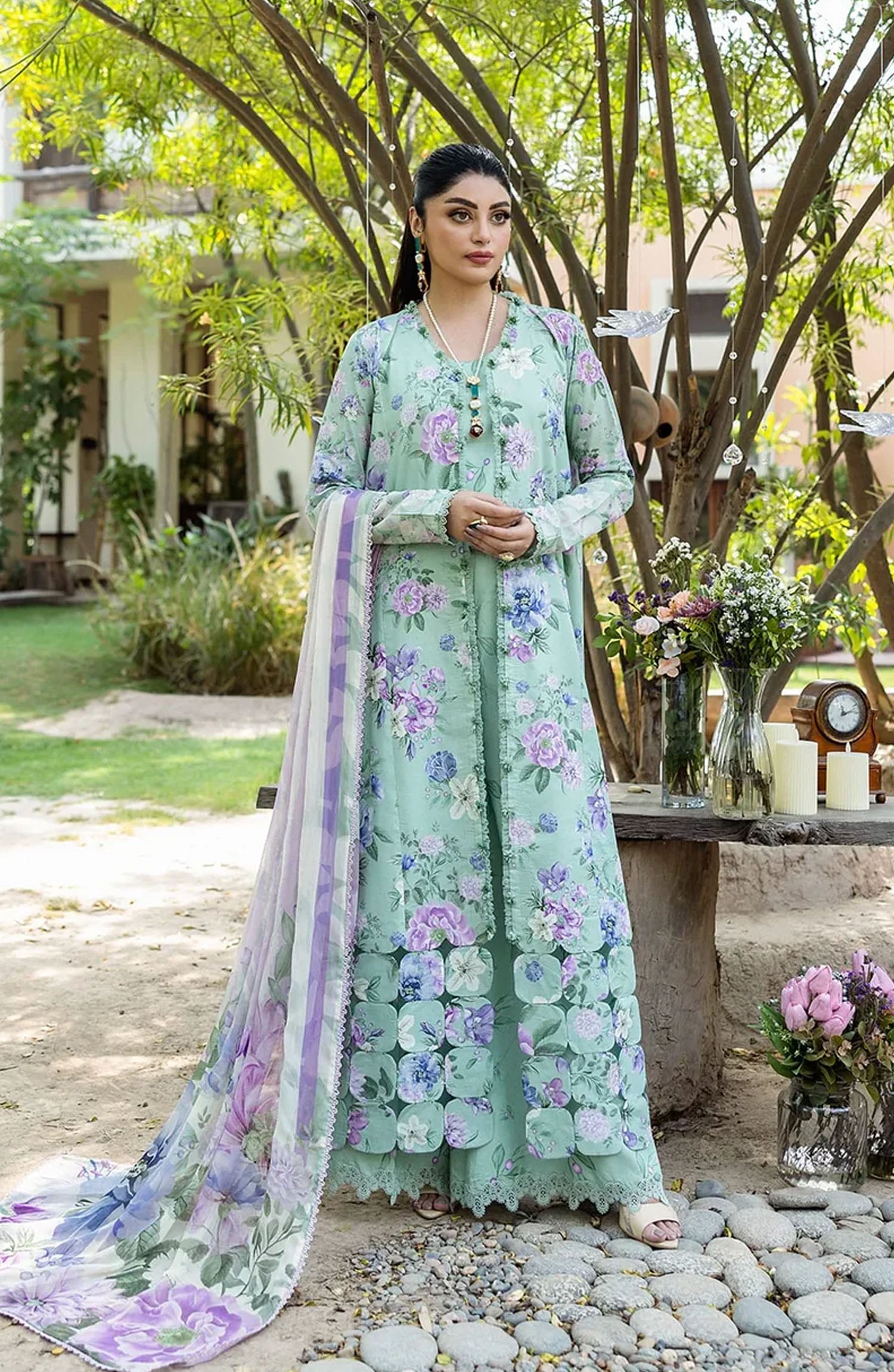Elaf Printed Lawn Unstitched 3 Piece Suit - ECD-1A GARDENELLE - EL25PRN - Green - Summer Collection