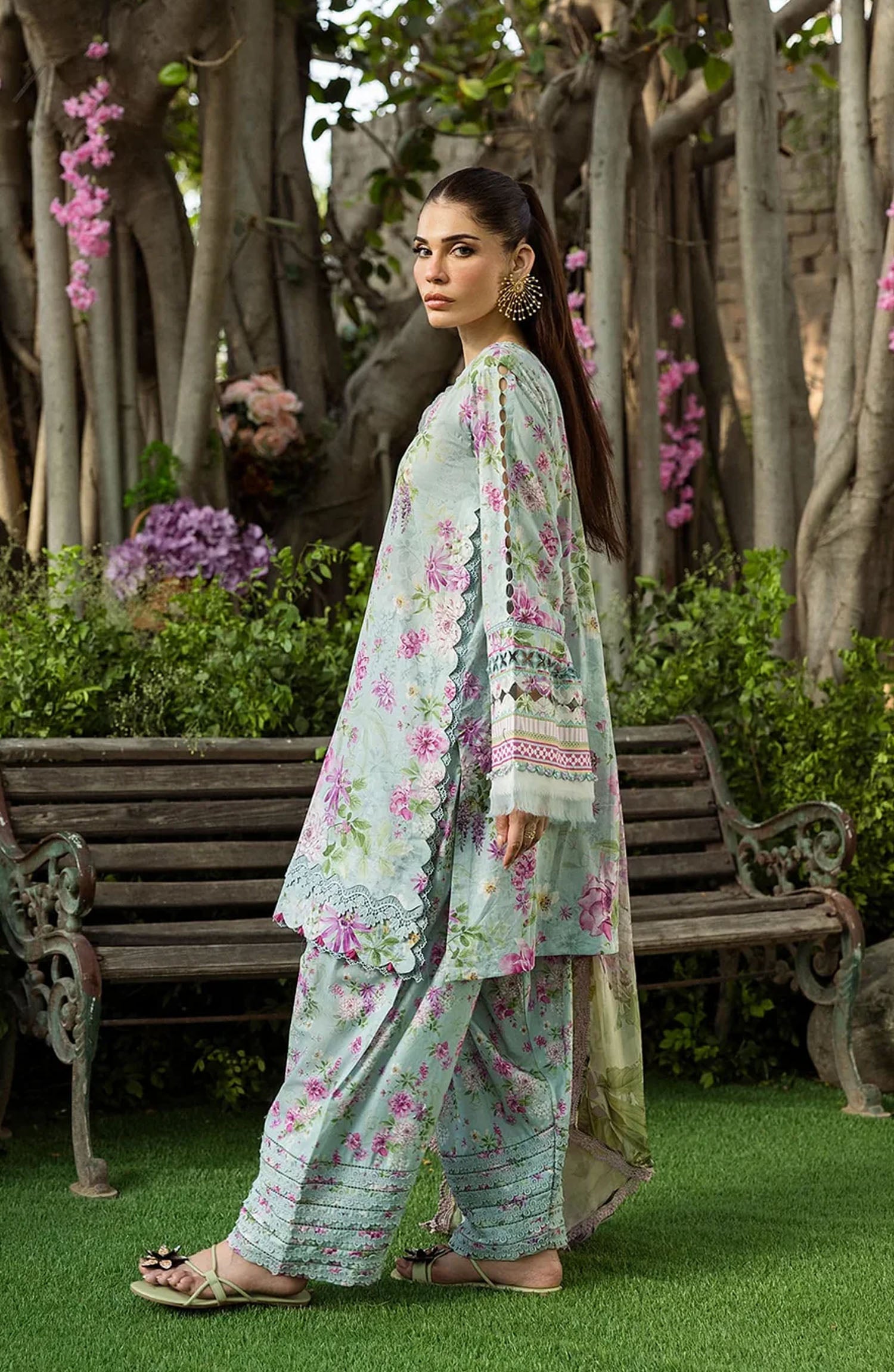 Elaf Printed Lawn Unstitched 3 Piece Suit - ECD-3B FLORAL CHARM - EL25PRN - Green - Summer Collection