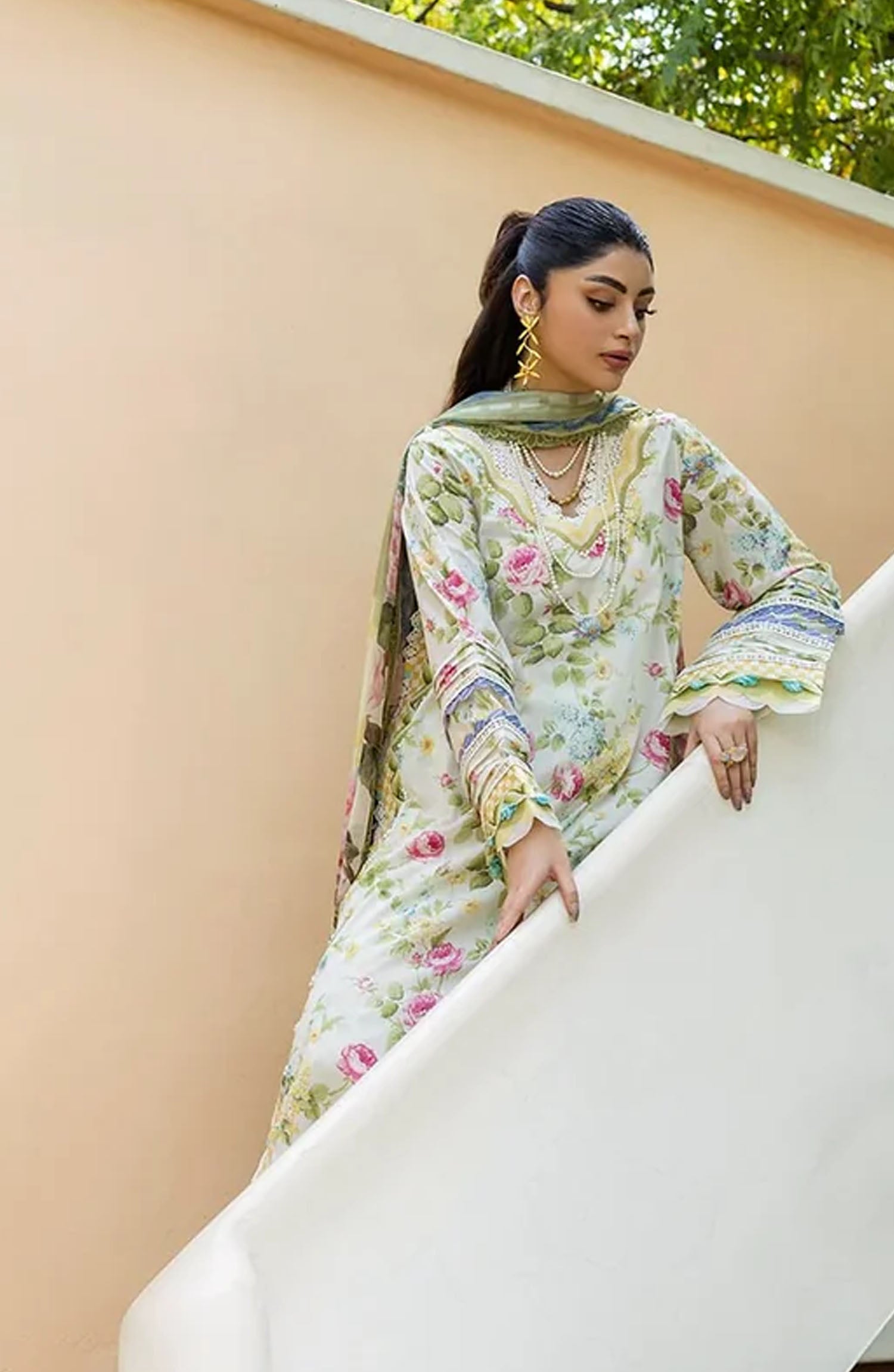 Elaf Printed Lawn Unstitched 3 Piece Suit - ECD-5A GLADIOLUS GRACE - EL25PRN - Green - Summer Collection